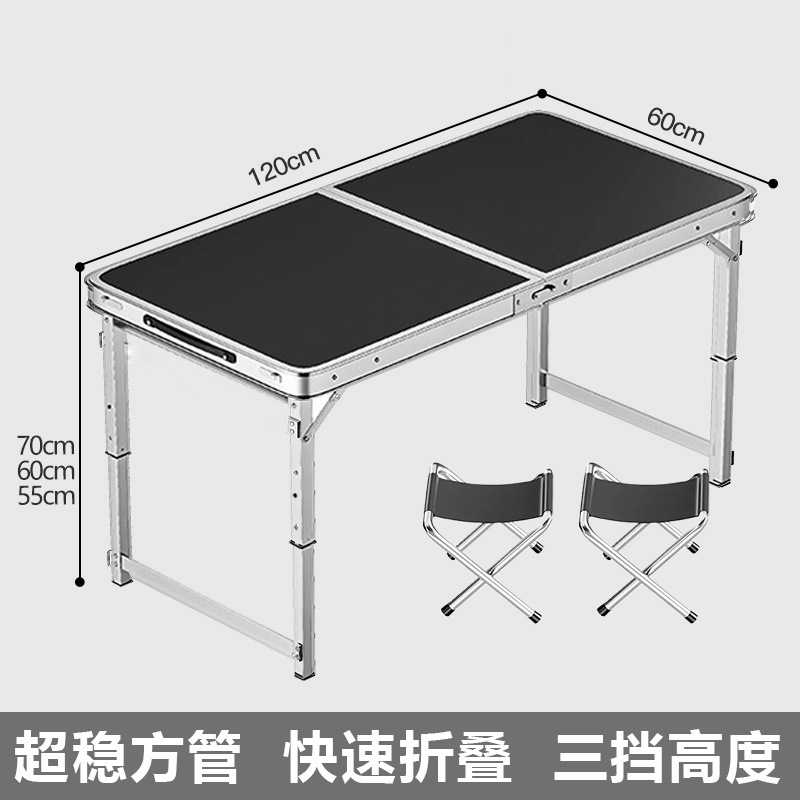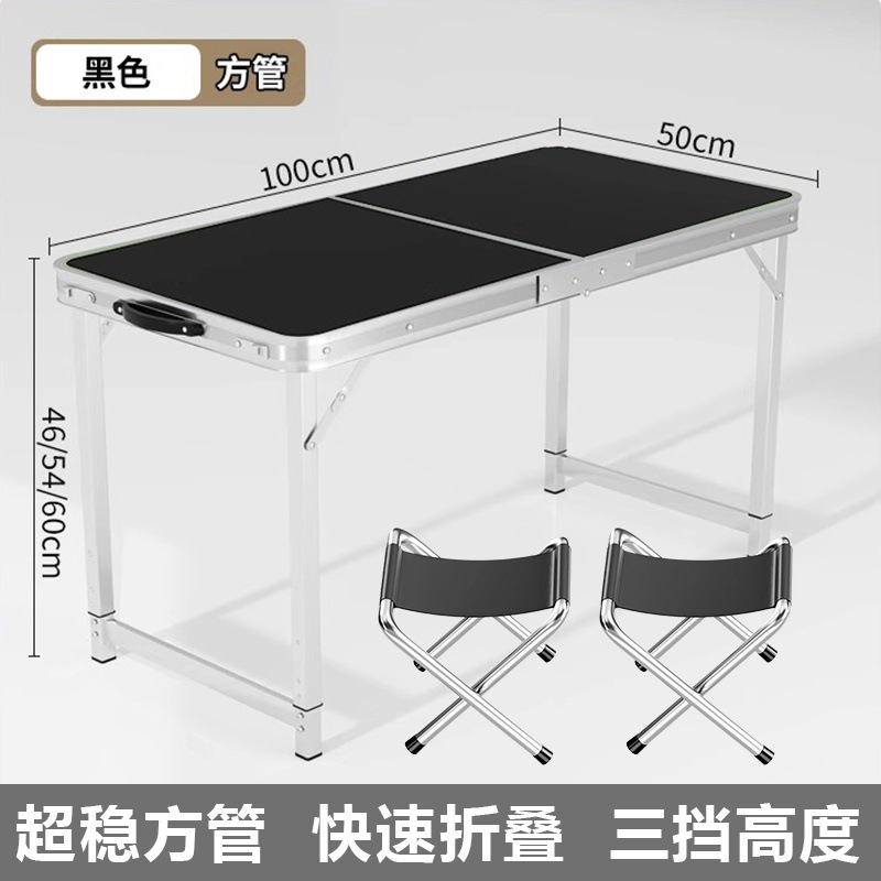 • Black-120CM 대형 사각 튜브 테이블 + 알루미늄 스툴 2개