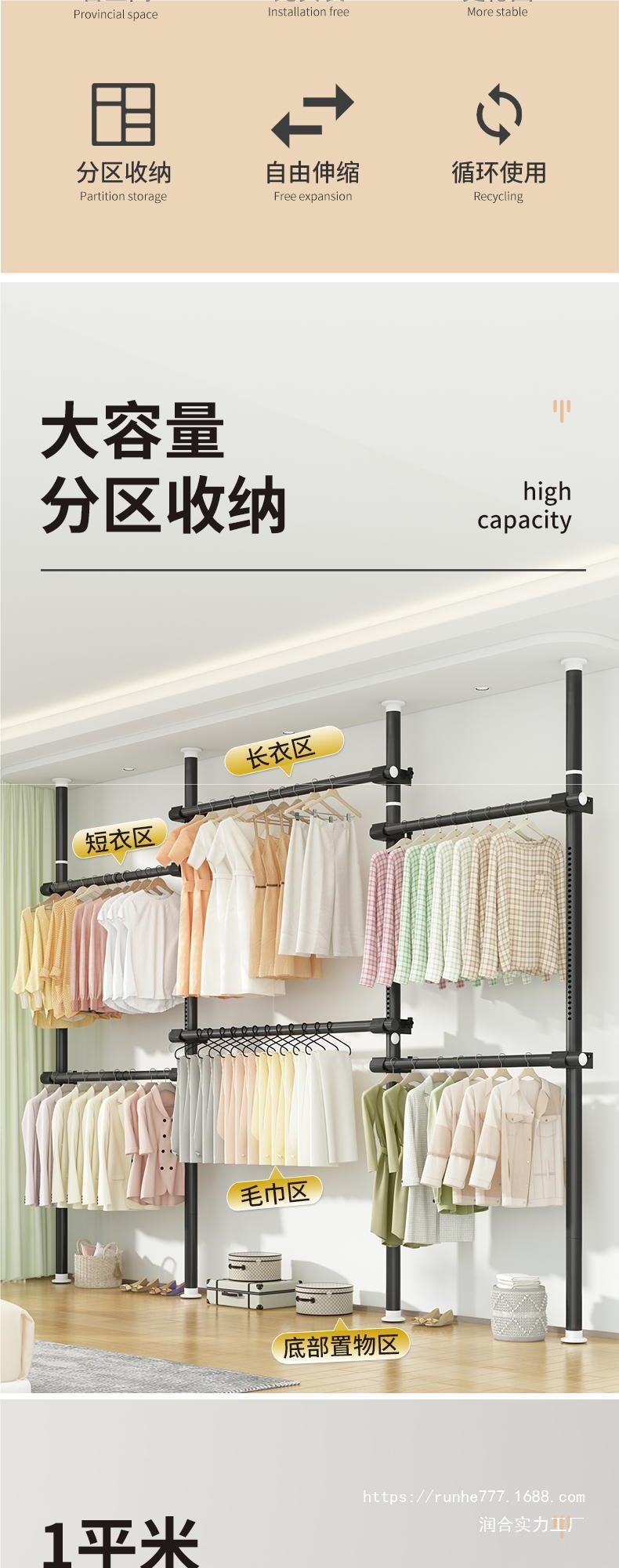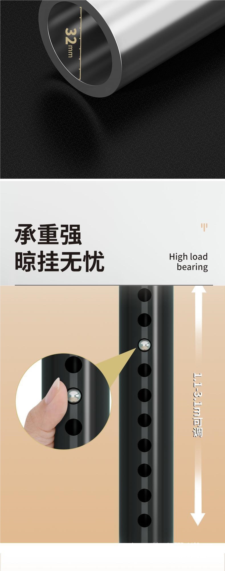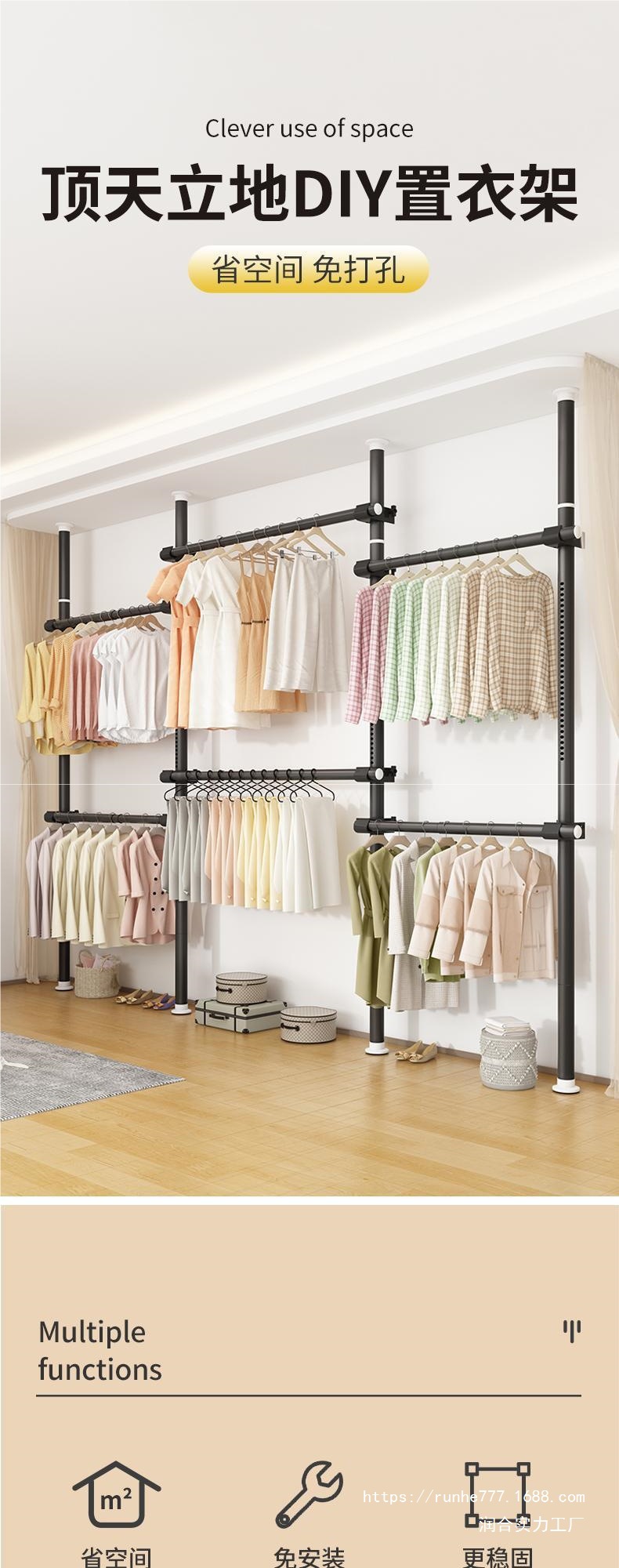 기숙사용 천장형 옷장, 가정용 플로어스탠딩 펀치프리 옷걸이, 텔레스코픽 옷걸이, 코트랙, 발코니 옷걸이 MC