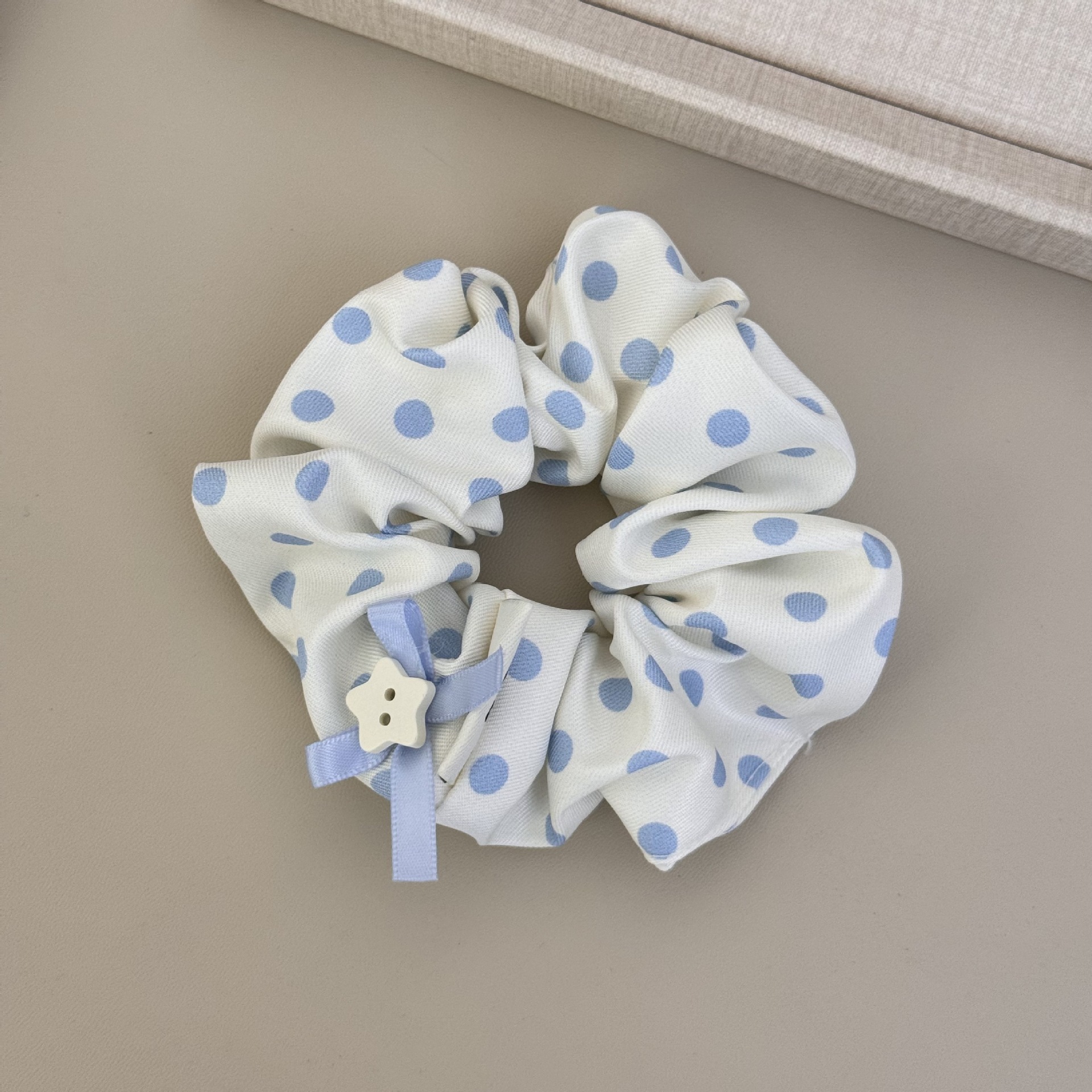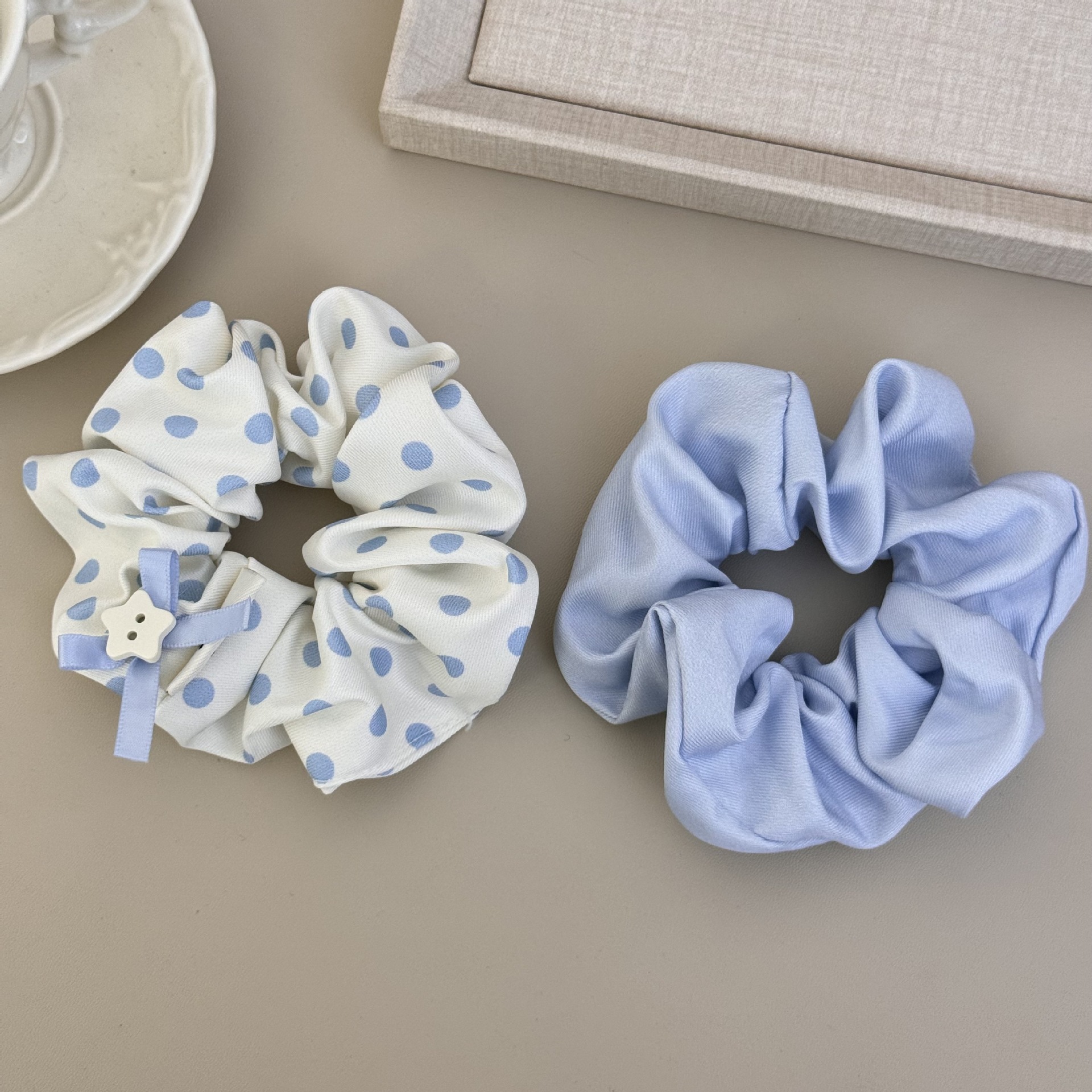 한국 오니의 새로운 블루 폴카 도트 대학 머리끈, 다용도 통근 머리끈, 솔리드 컬러 조합 세트스토어 가기