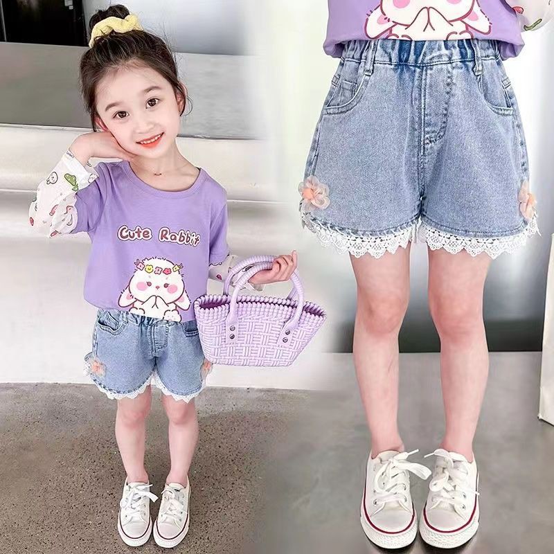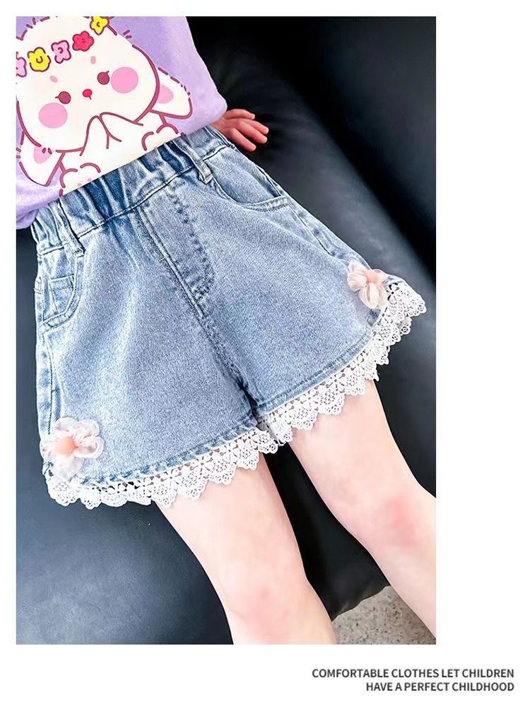 걸스 여름 데님 반바지 올매치 신형 어린이 중형어린이 여름 자수 바지 아마존 걸스 반바지