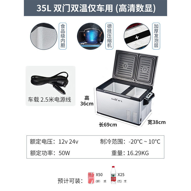 • 45L 순수 자동차 용도 (이중 도어, 이중 온도 + 냉동 및 냉장 파티션 + 내진 및 미끄럼 방지)