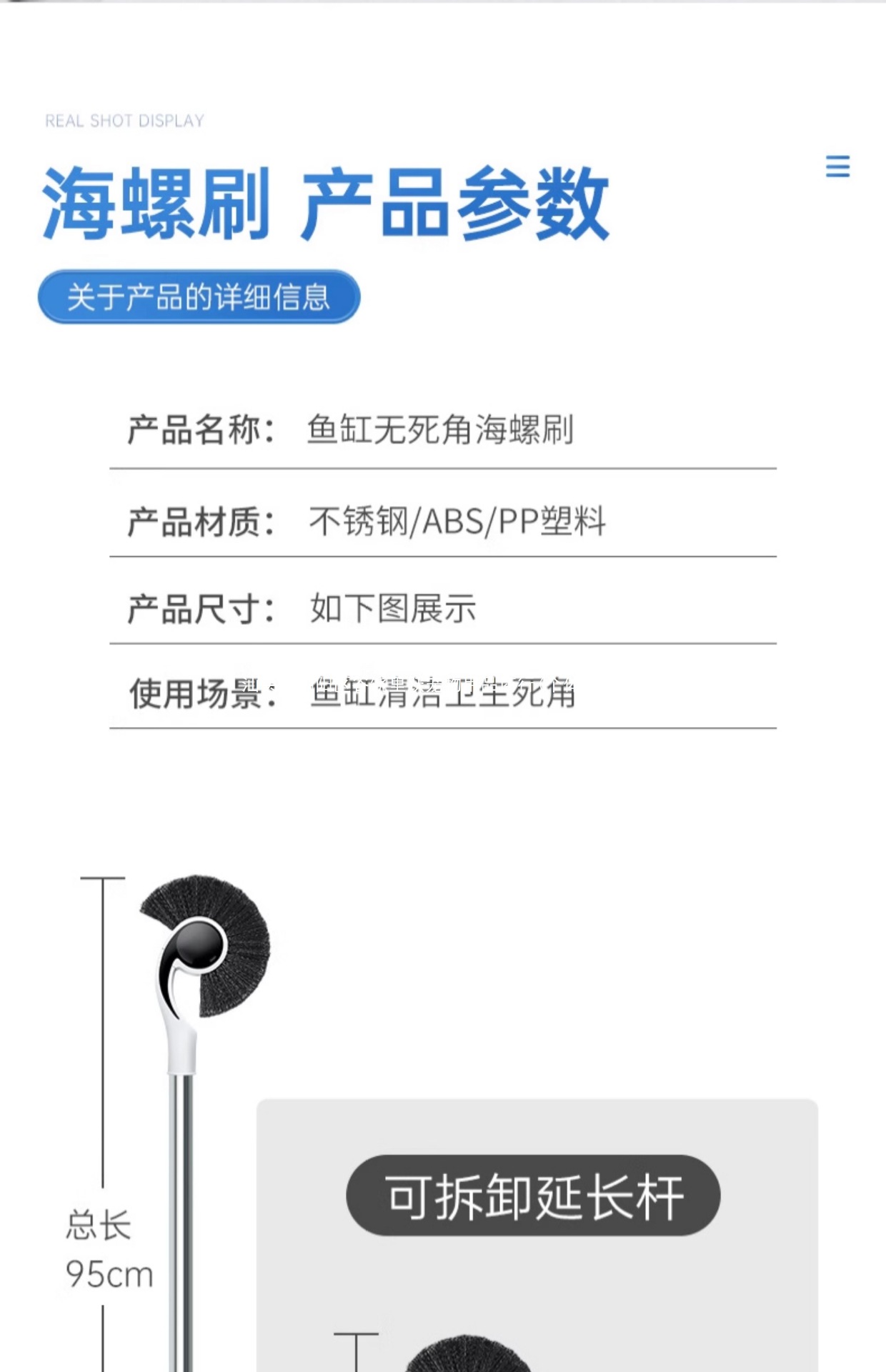 수조청소용 브러시, 길쭉하고 사각지대 없는 해조제거용품, 수조유리내벽청소용 브러시, 해조제거용 브러시, 스크레이퍼