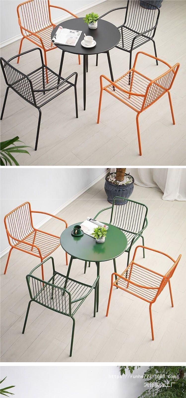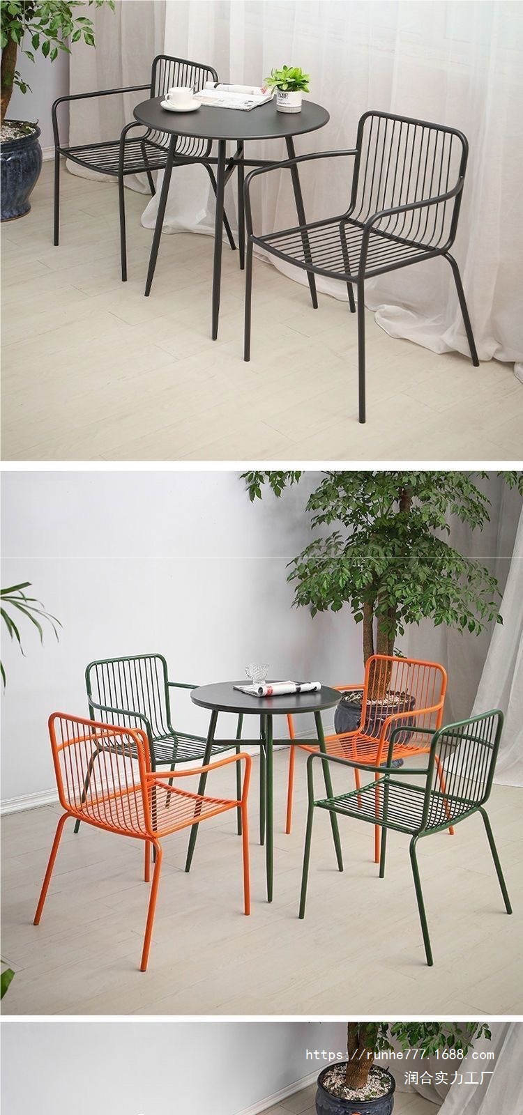 북유럽 철제 야외 테이블과 의자, 안뜰 접이식 의자, 밀크티 가게, 레저 발코니 티 테이블과 의자, 가정용 3피스 세트스토어 가기