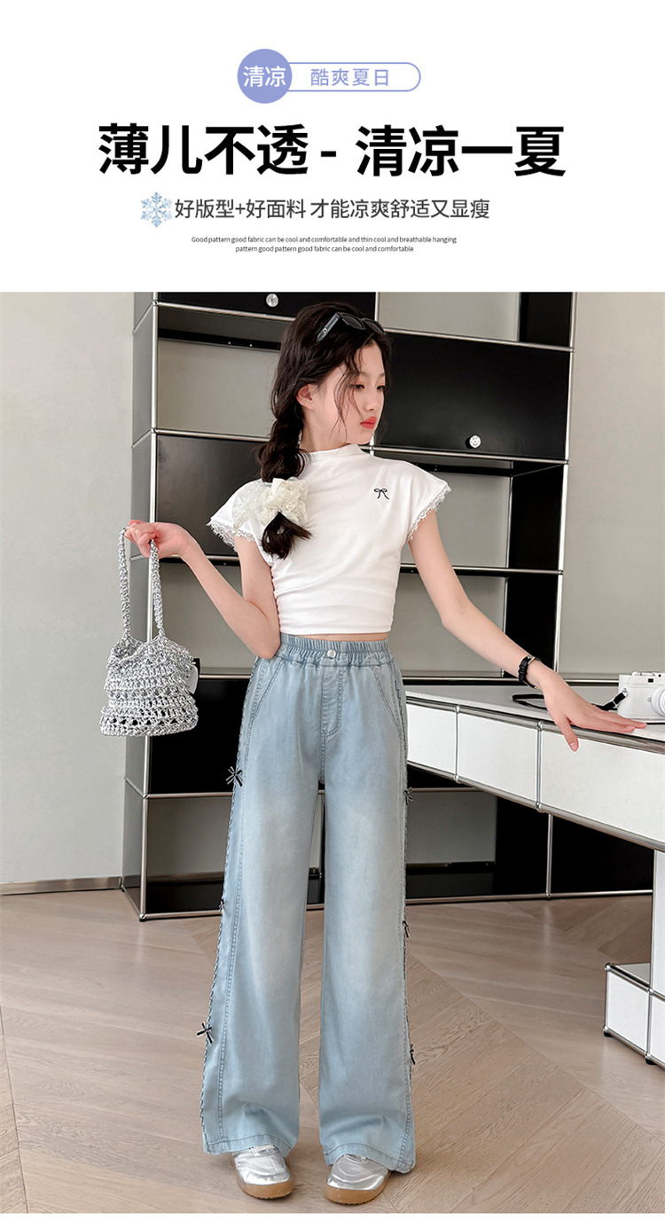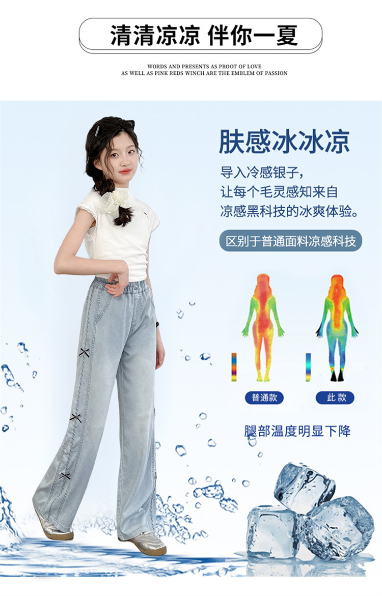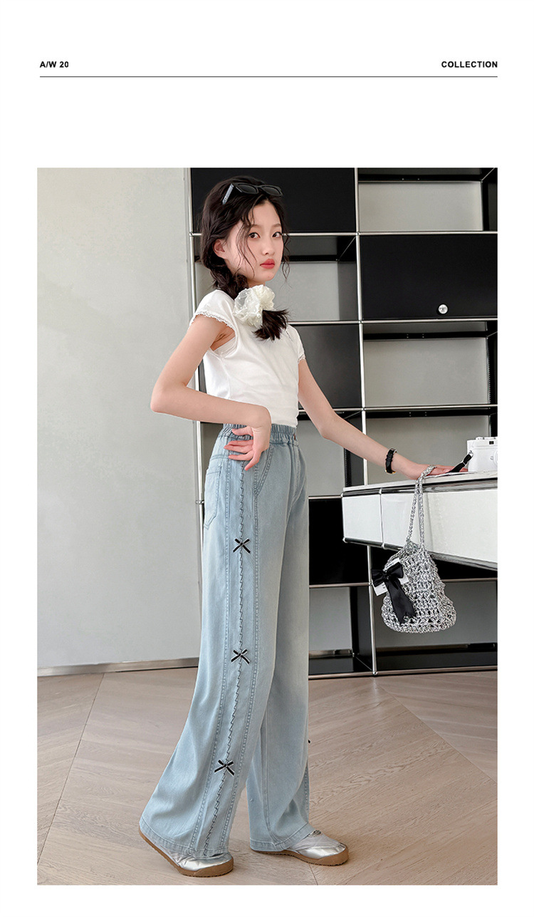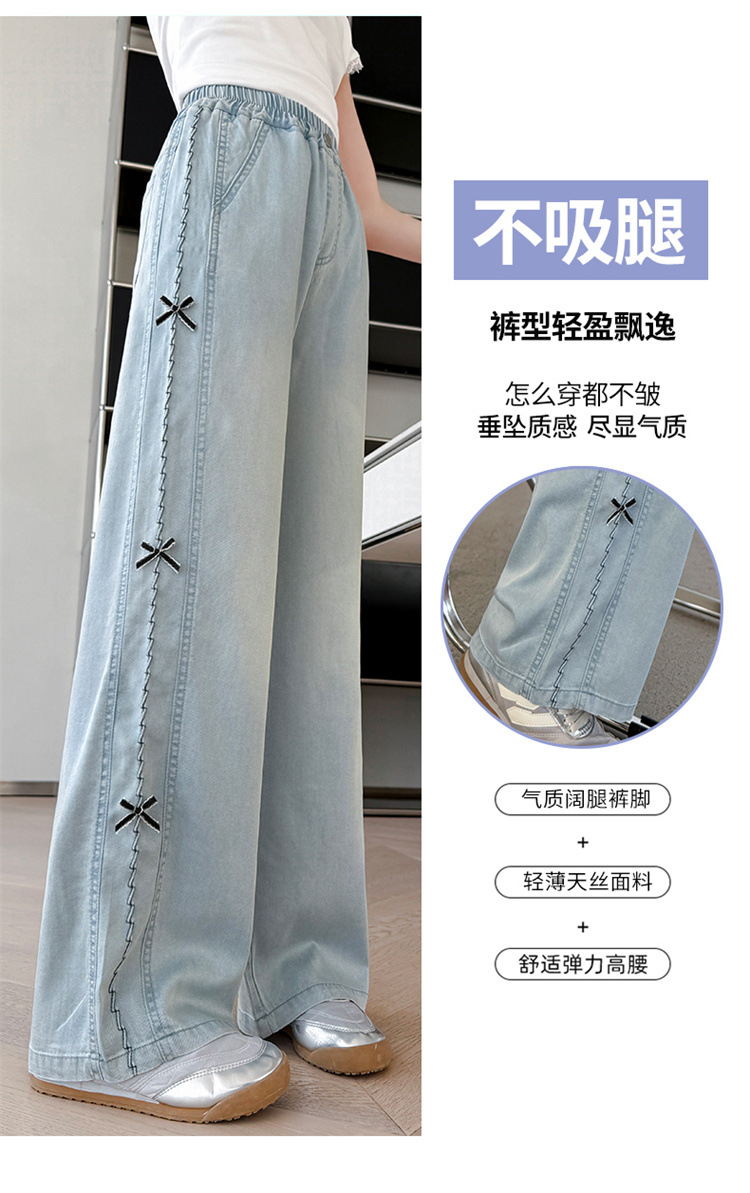 여아 바지 여름 얇은 스타일 2026 신상 여대아용 와이드 팬츠 중학생 텐셀 데님 팬츠 스트레이트 롱 팬츠