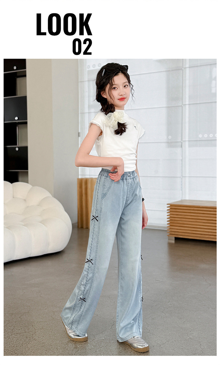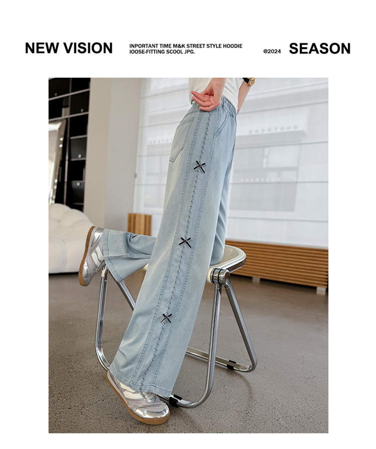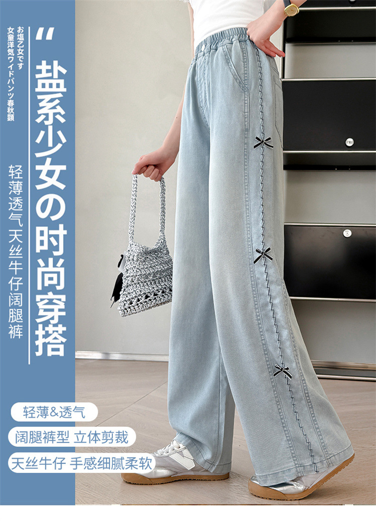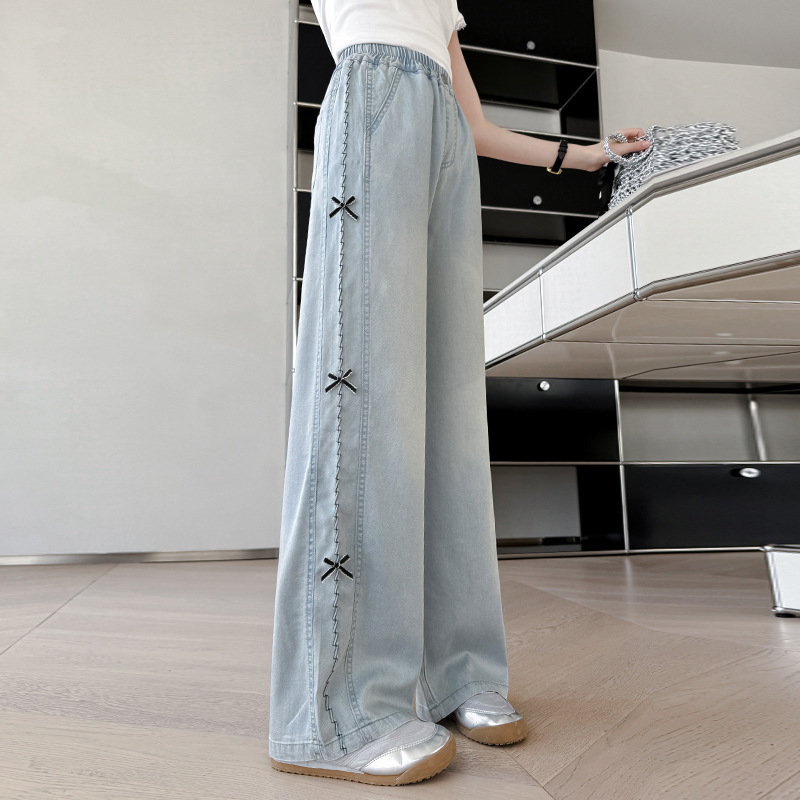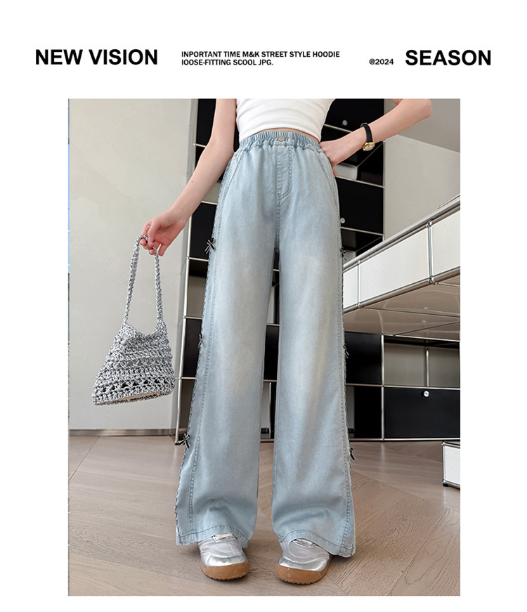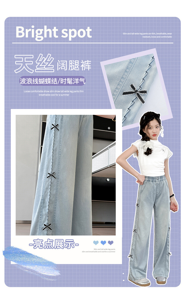 여아 바지 여름 얇은 스타일 2026 신상 여대아용 와이드 팬츠 중학생 텐셀 데님 팬츠 스트레이트 롱 팬츠스토어 가기
