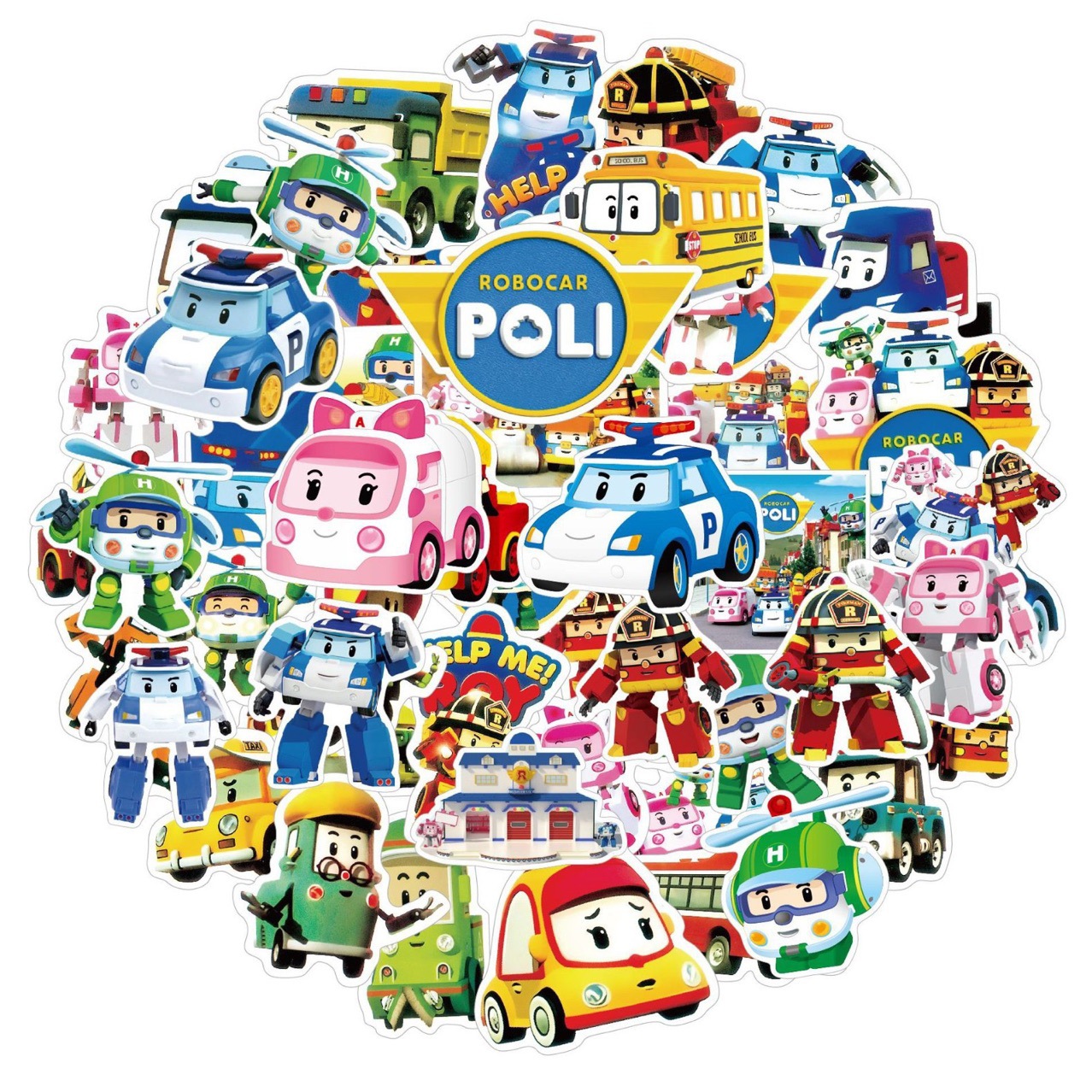 51개의 폴리 변형 경찰차 스티커, 만화 만화 스티커, 어린이 그림책 스티커, 창작 수첩 스티커