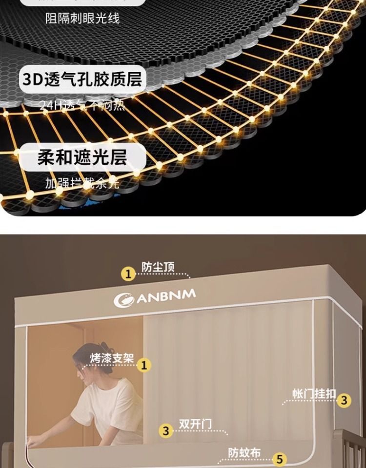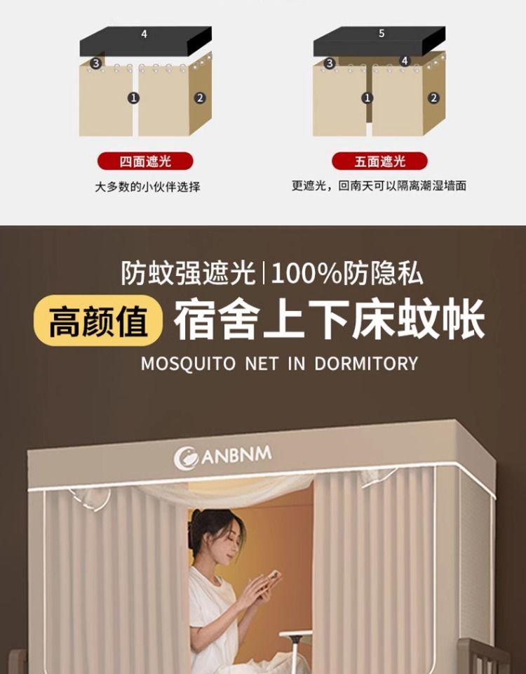 Nanjiren 2025 새로운 모기장 학생 기숙사 차광 침대 커튼 일체형 이층 침대 싱글 침대 풀 커버스토어 가기