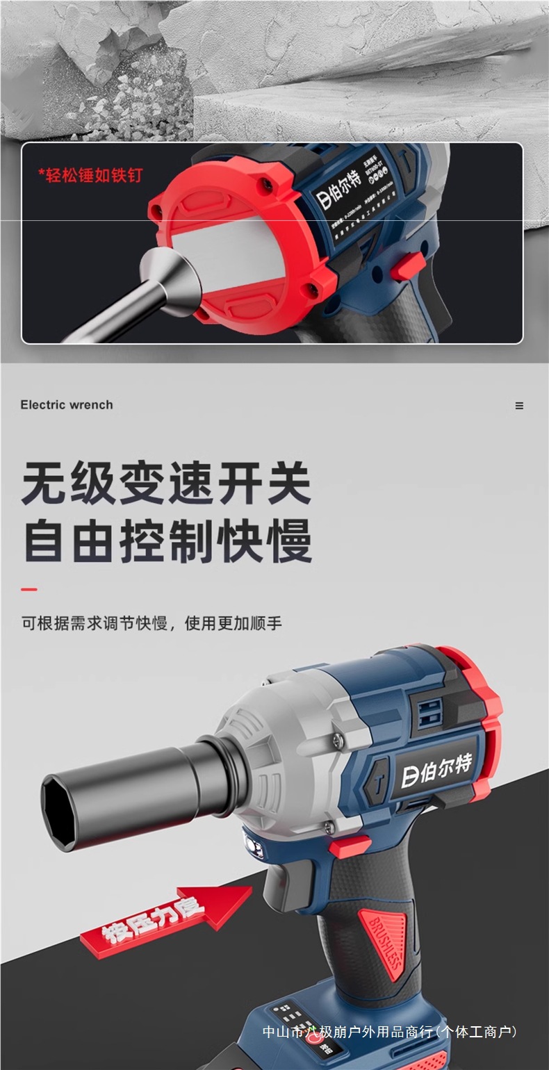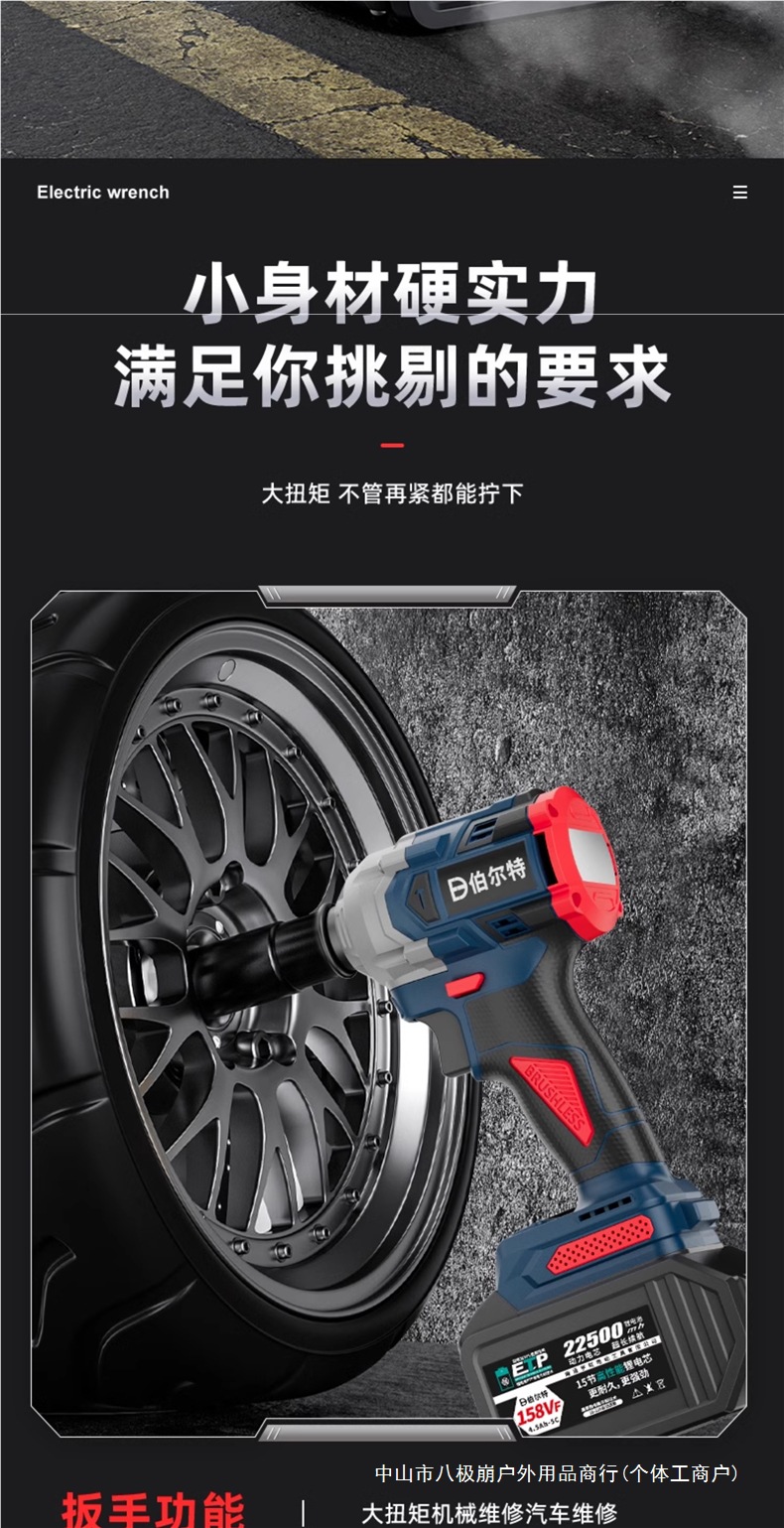버트 브러시리스 충격 전기 렌치 충전 리튬 렌치 대피소 목공 대형 토크 대피소 8 극스토어 가기