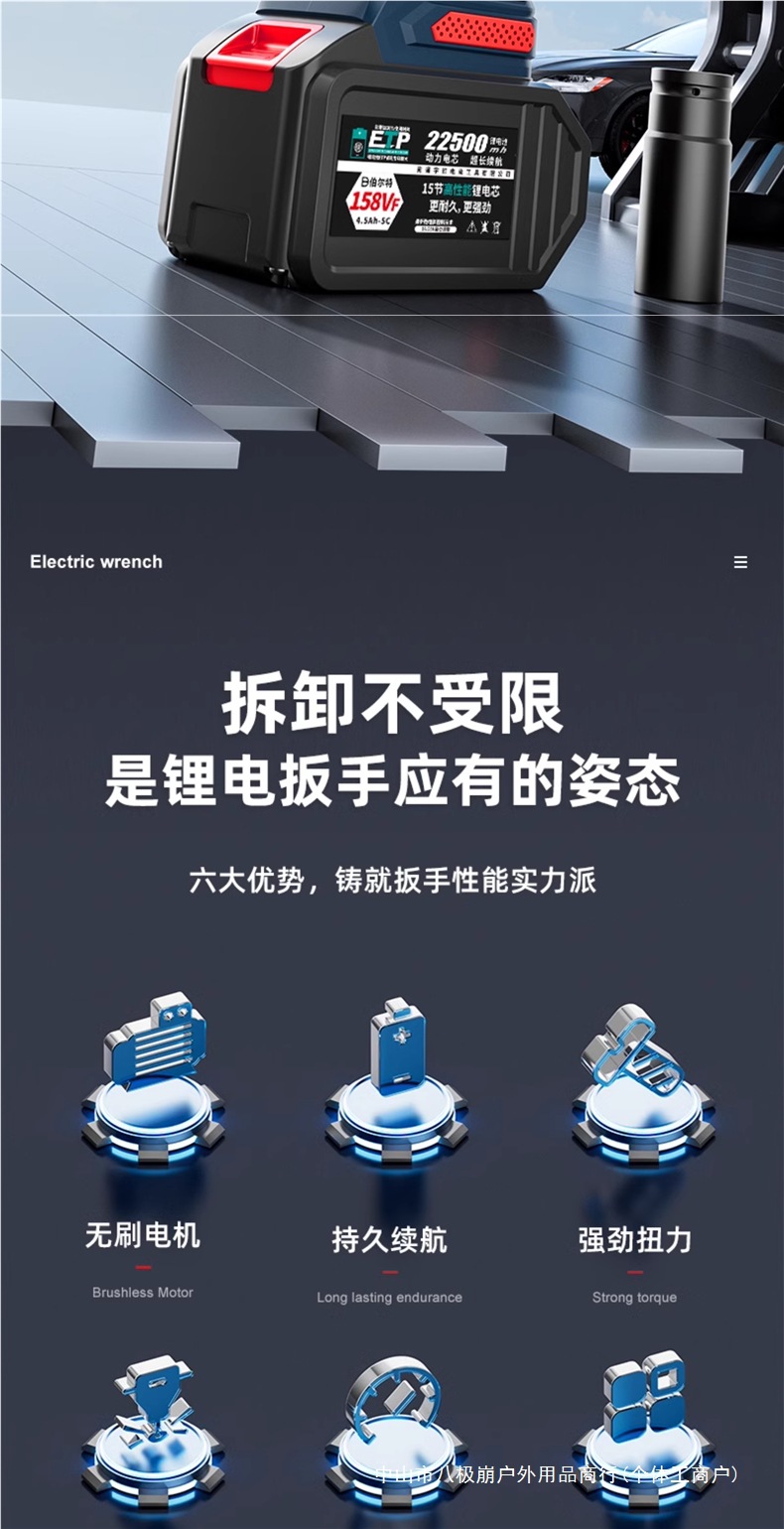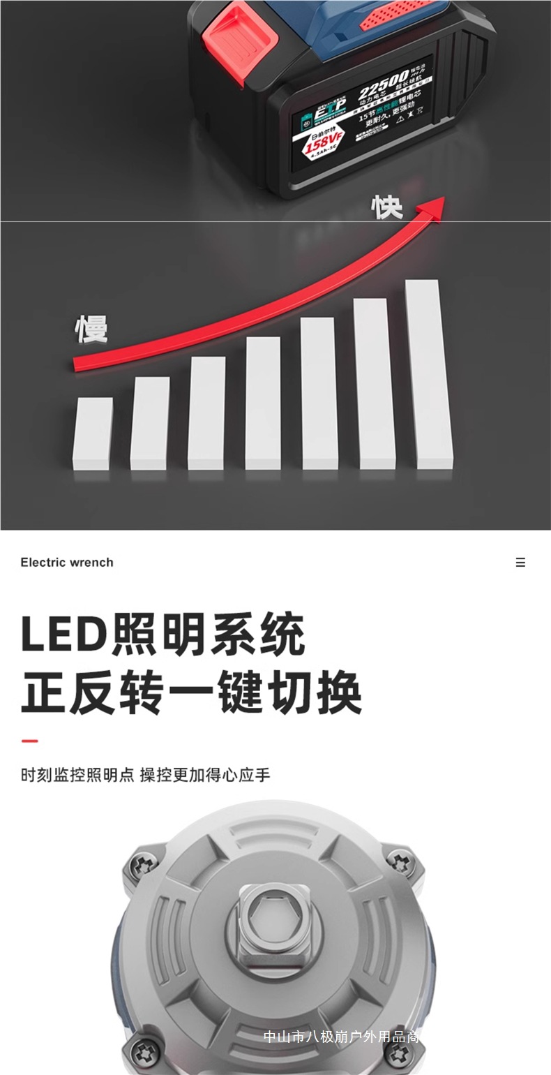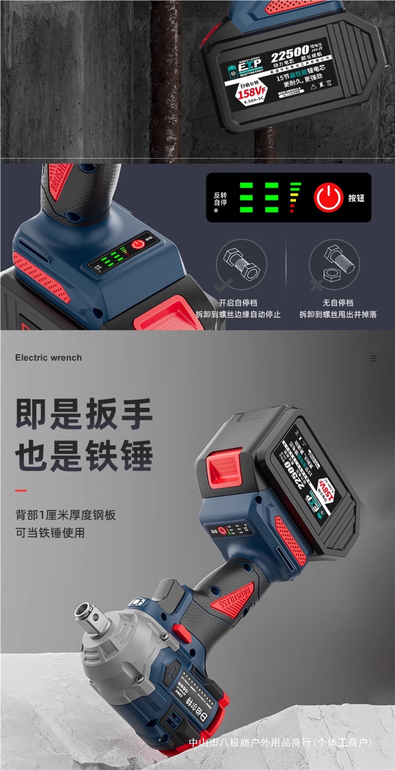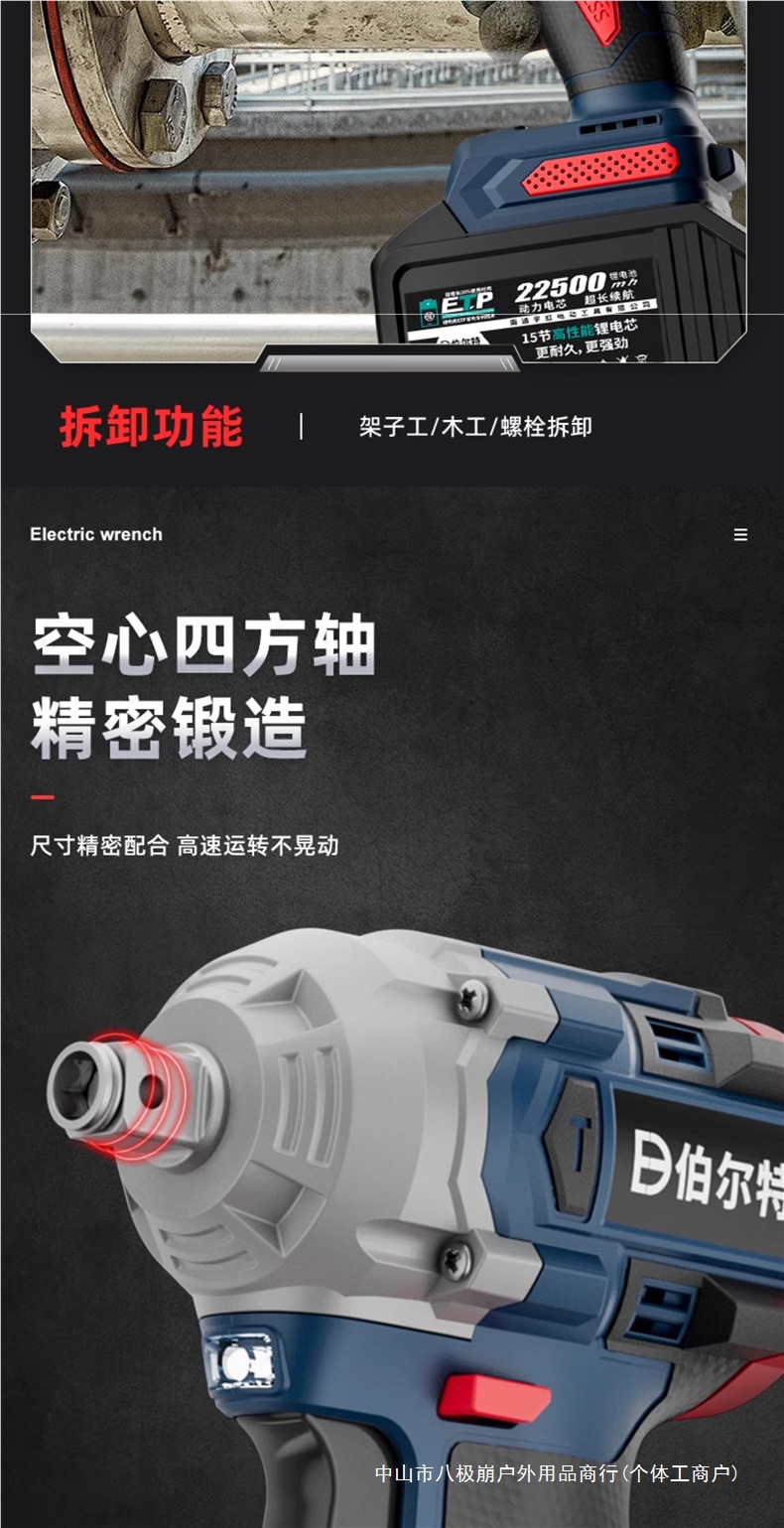 버트 브러시리스 충격 전기 렌치 충전 리튬 렌치 대피소 목공 대형 토크 대피소 8 극