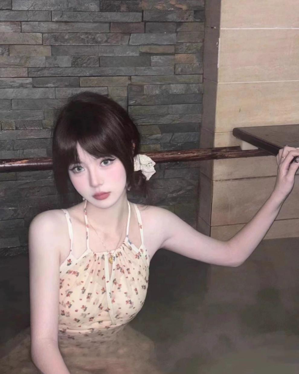 한국 2025년 신작 인기 수영복 여성 원피스 스커트 스타일 신선하고 섹시한 꽃무늬 홀터넥 온천욕스토어 가기