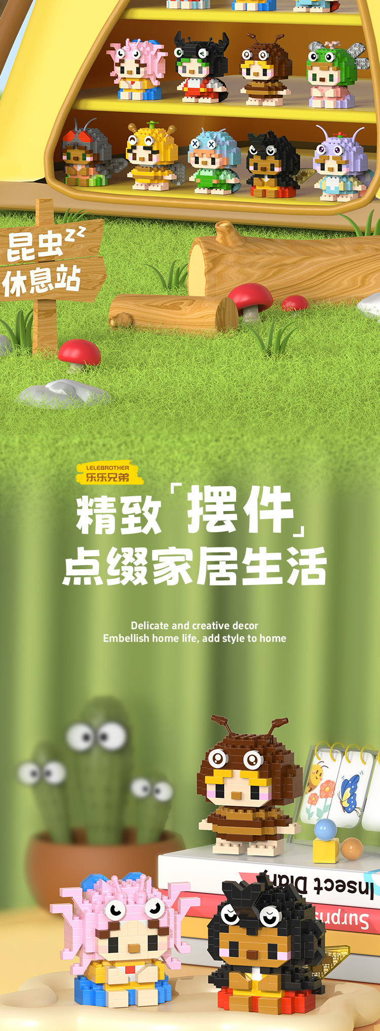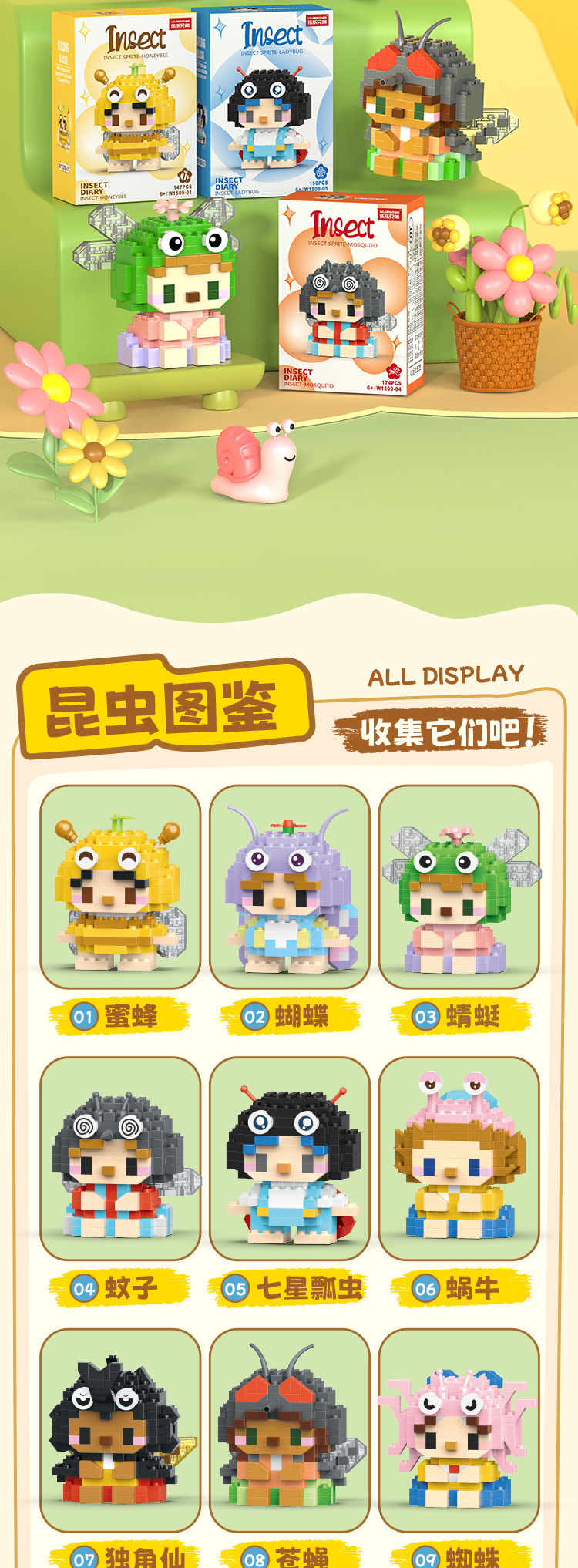 곤충 지니 만화 인형 조립 블라인드 박스 어린이 장난감 레고 장식품 선물 도매 호환스토어 가기