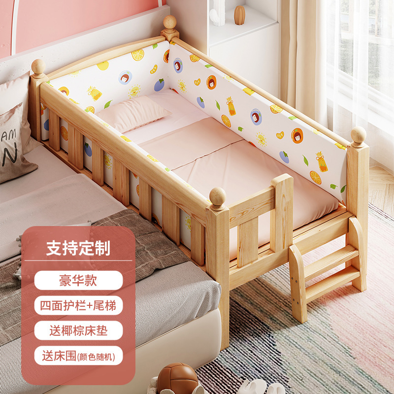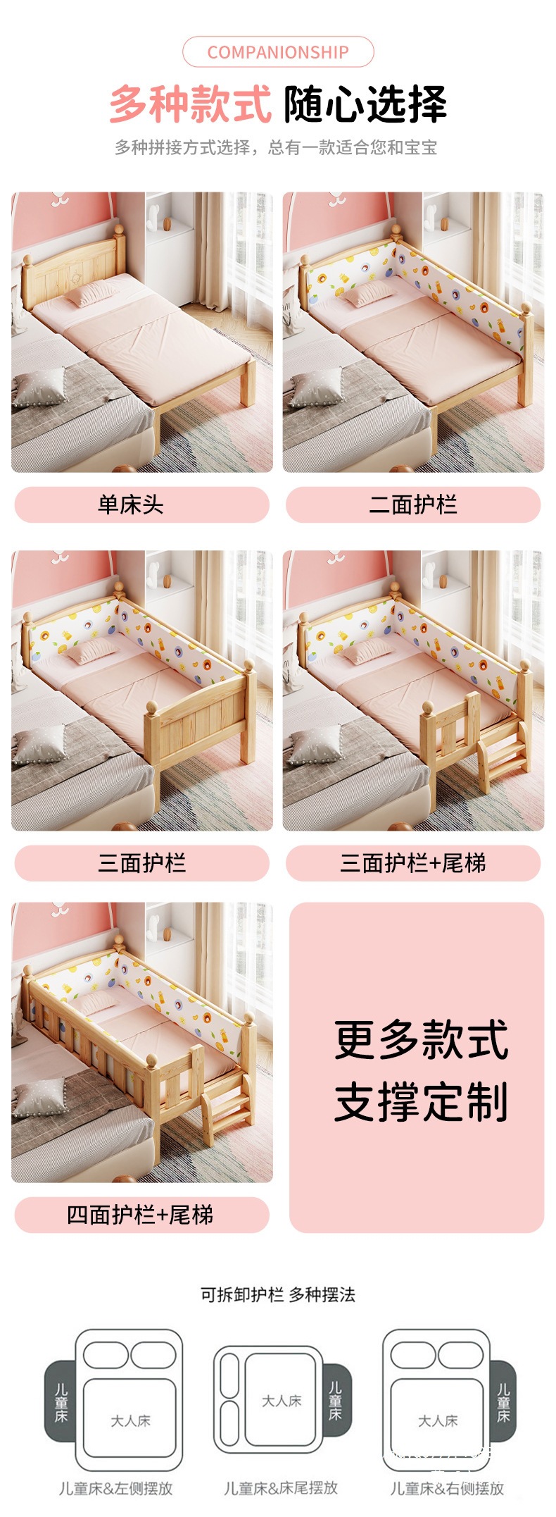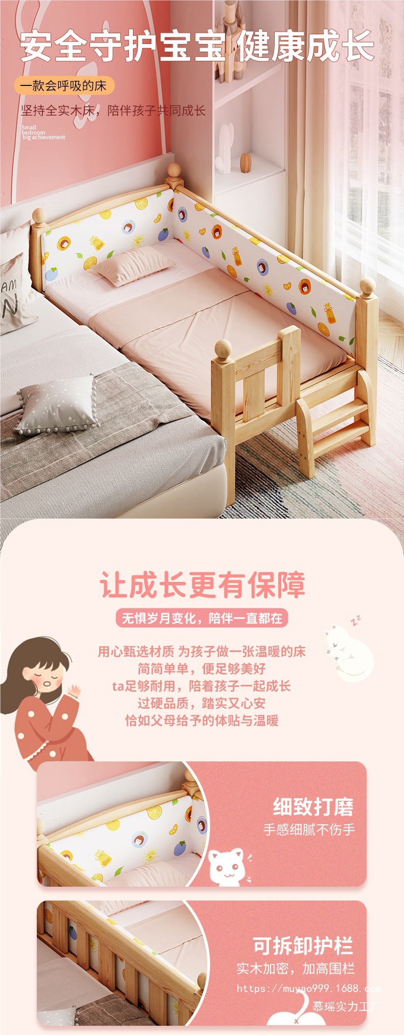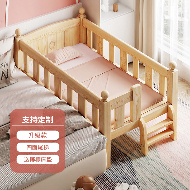 단단한 나무 어린이 침대 소년의 싱글 침대 아기 접합 큰 침대 사이드 침대 가드레일 소녀의 공주 침대와 함께 넓은 작은 침대스토어 가기