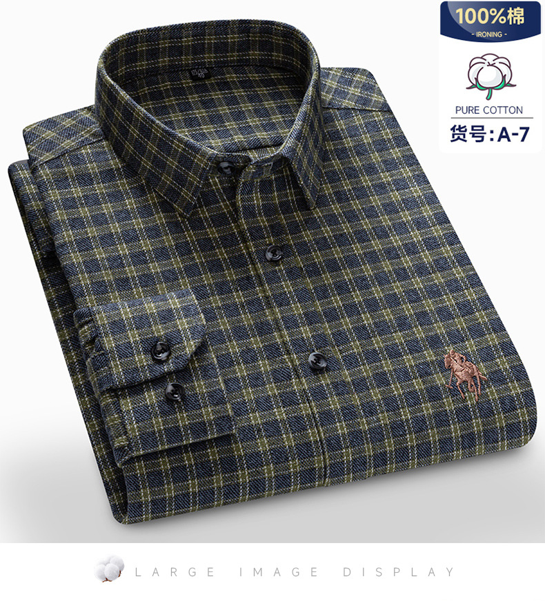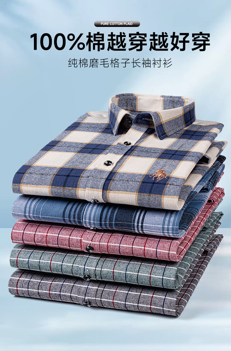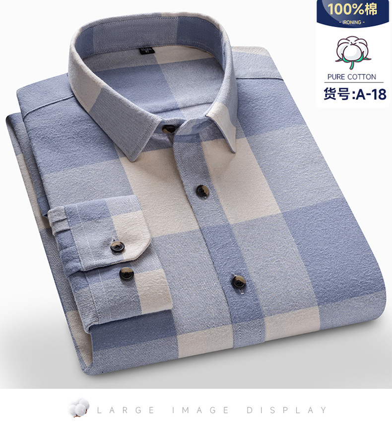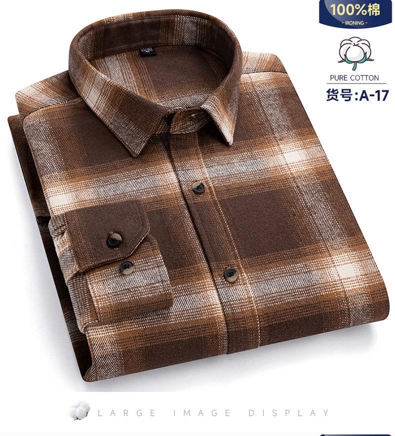 공장 공급 100% 면 기모 긴팔 셔츠 남성용 봄, 가을 격자 무늬 캐주얼 면 셔츠 중년 아빠의 대형 사이즈스토어 가기