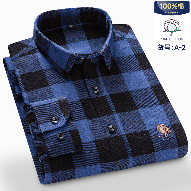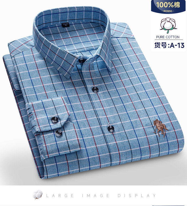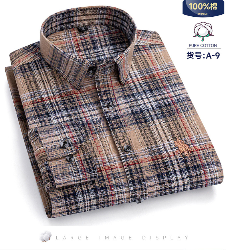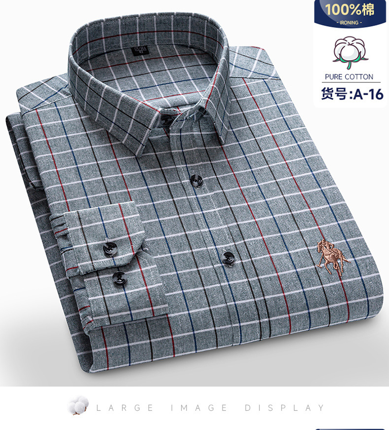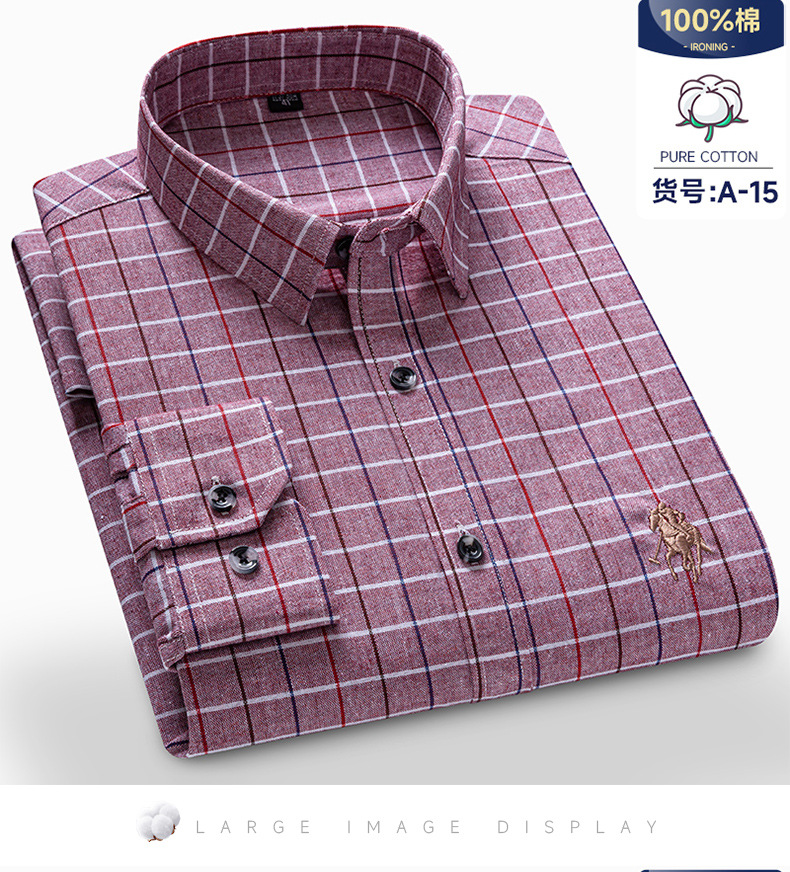 공장 공급 100% 면 기모 긴팔 셔츠 남성용 봄, 가을 격자 무늬 캐주얼 면 셔츠 중년 아빠의 대형 사이즈스토어 가기