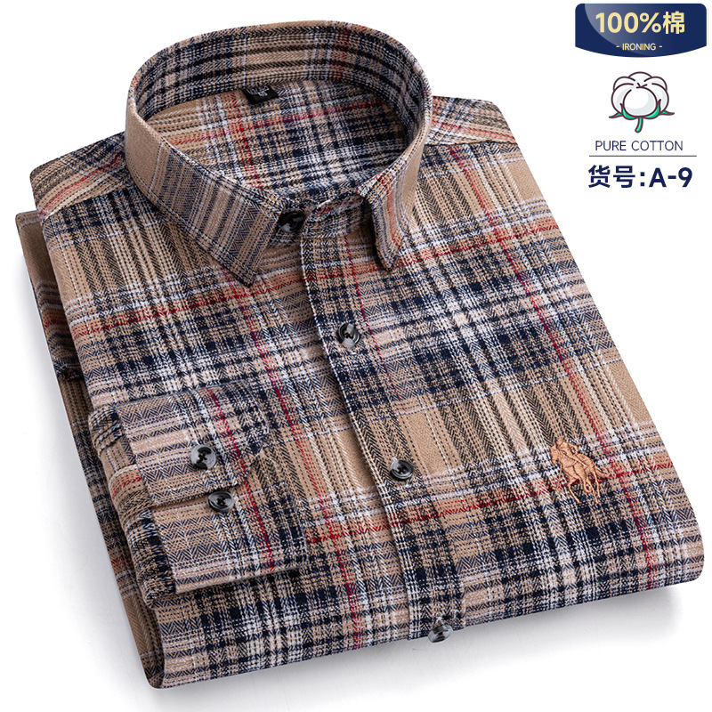 공장 공급 100% 면 기모 긴팔 셔츠 남성용 봄, 가을 격자 무늬 캐주얼 면 셔츠 중년 아빠의 대형 사이즈