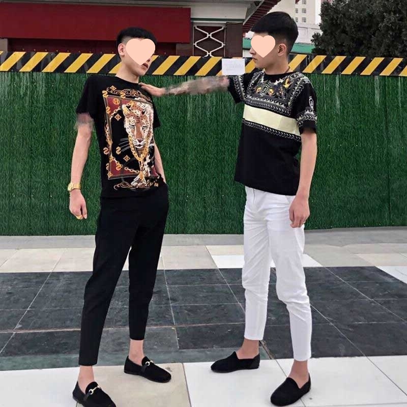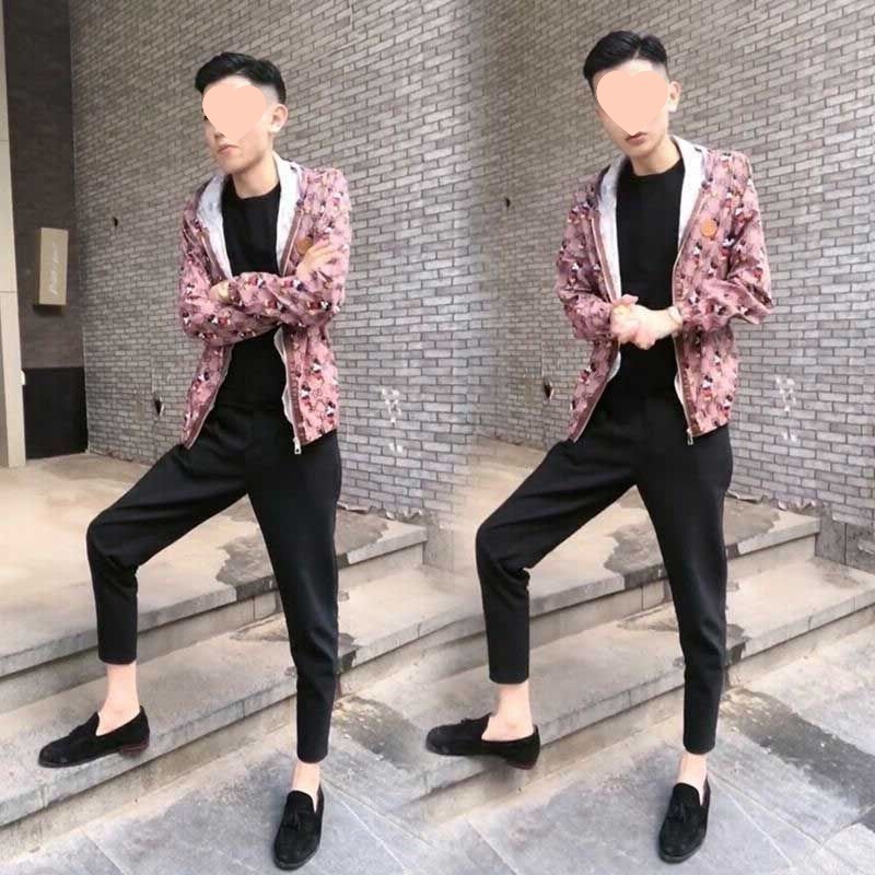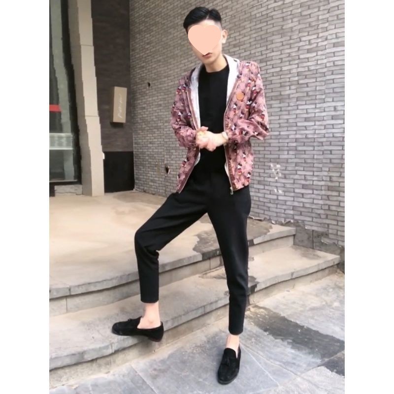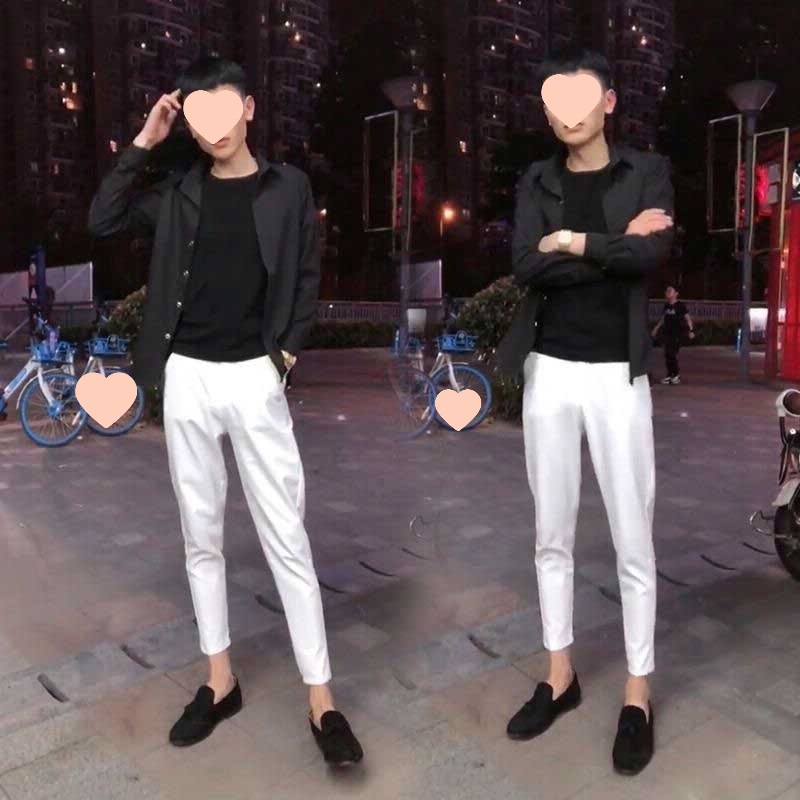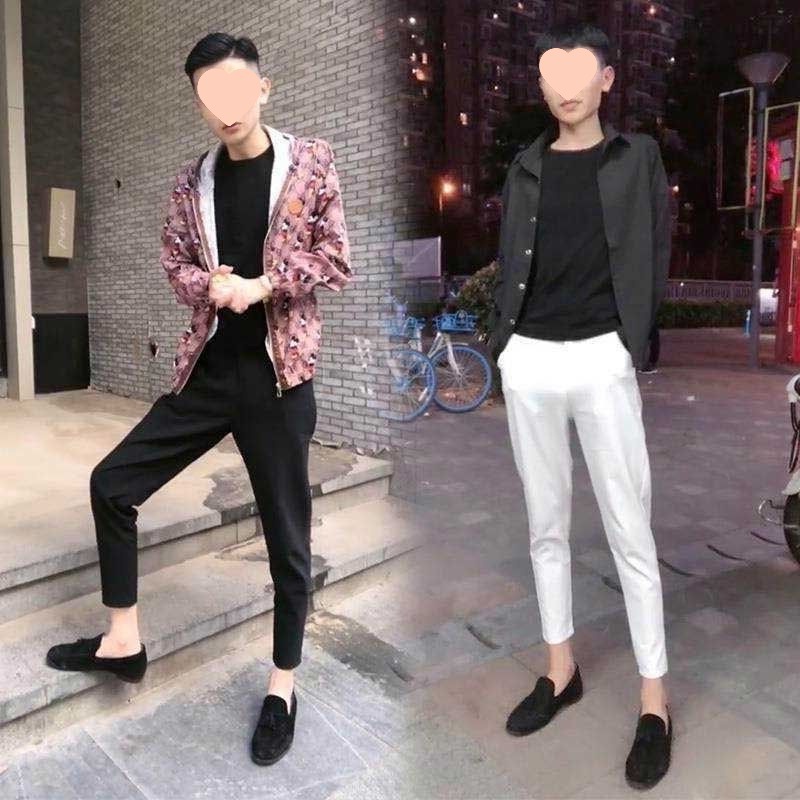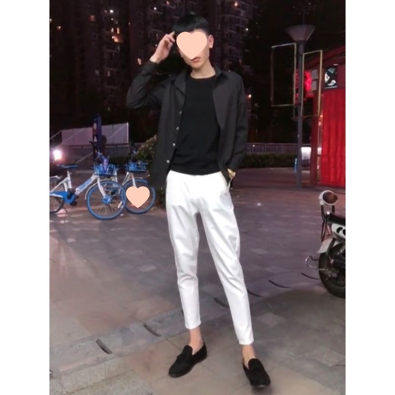 영적 소셜 가이 솔리드 컬러 발 바지 남성용 유행 남성 온라인 인기 느슨한 슬림 핏 캐주얼 바지