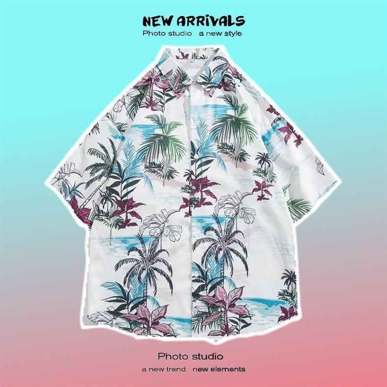 홍콩 스타일 복고풍 빈티지 꽃무늬 셔츠 반팔 남성 하와이 디자인 잘 생긴 루즈하고 다재다능한 커플 셔츠