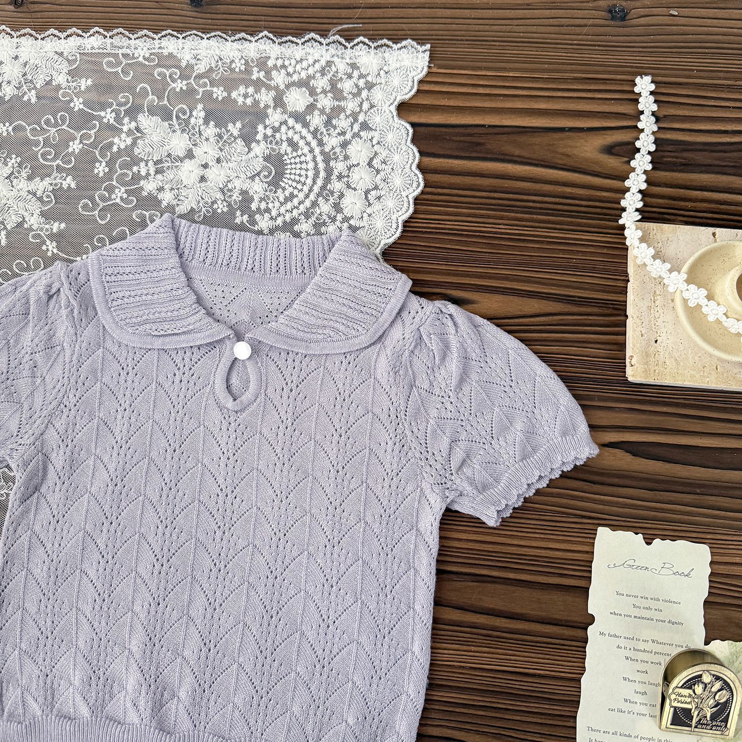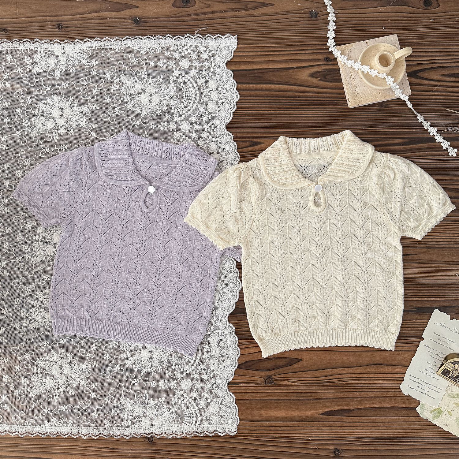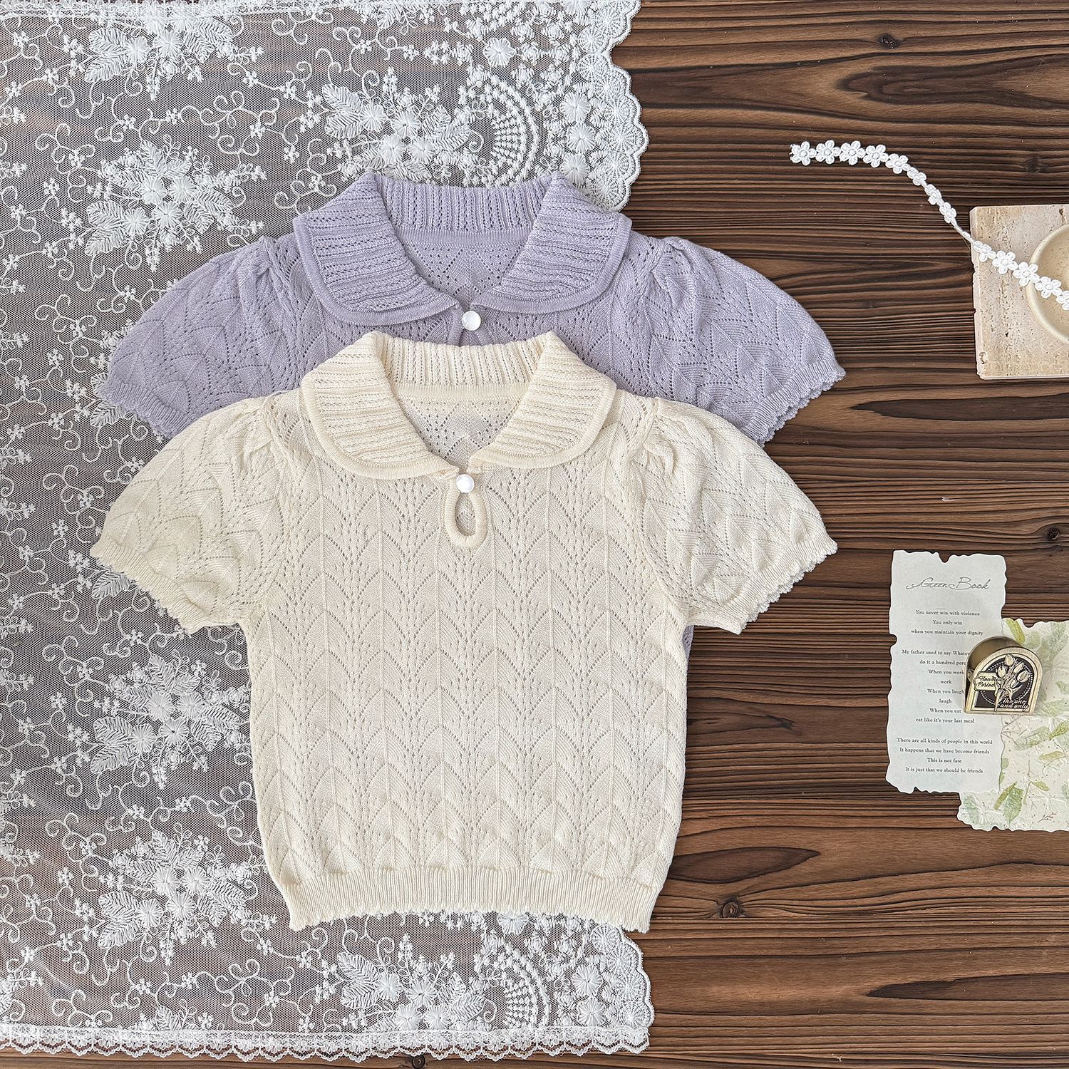 여름 Cutemily Girl's Pullover와 Yuanbao Collow-out 니트 스웨터 여성의 얇은 귀여운 텐셀 니트 짧은 소매스토어 가기