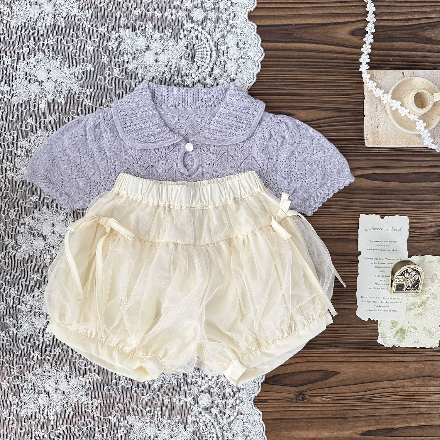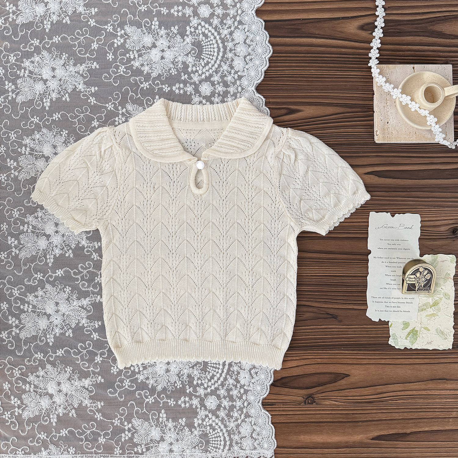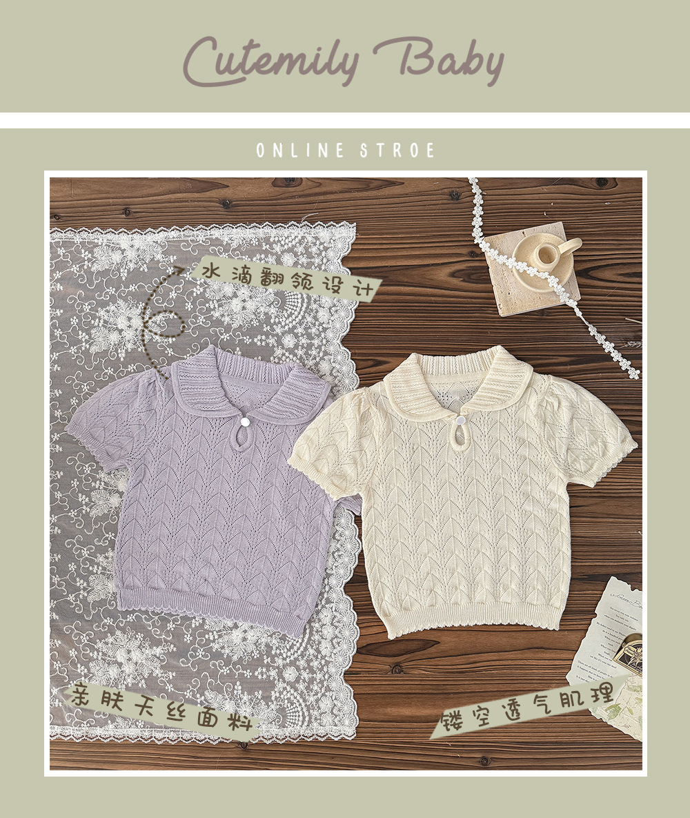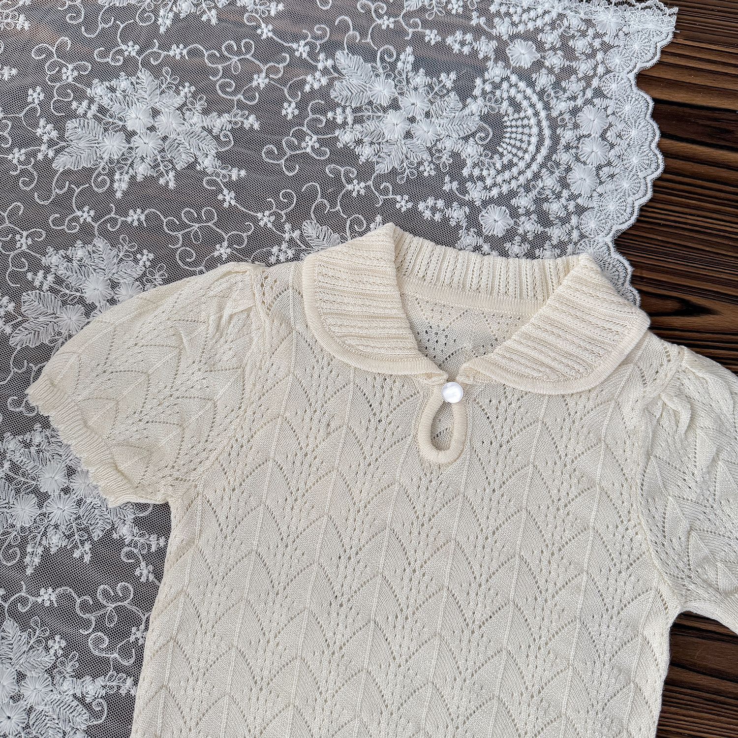 여름 Cutemily Girl's Pullover와 Yuanbao Collow-out 니트 스웨터 여성의 얇은 귀여운 텐셀 니트 짧은 소매스토어 가기