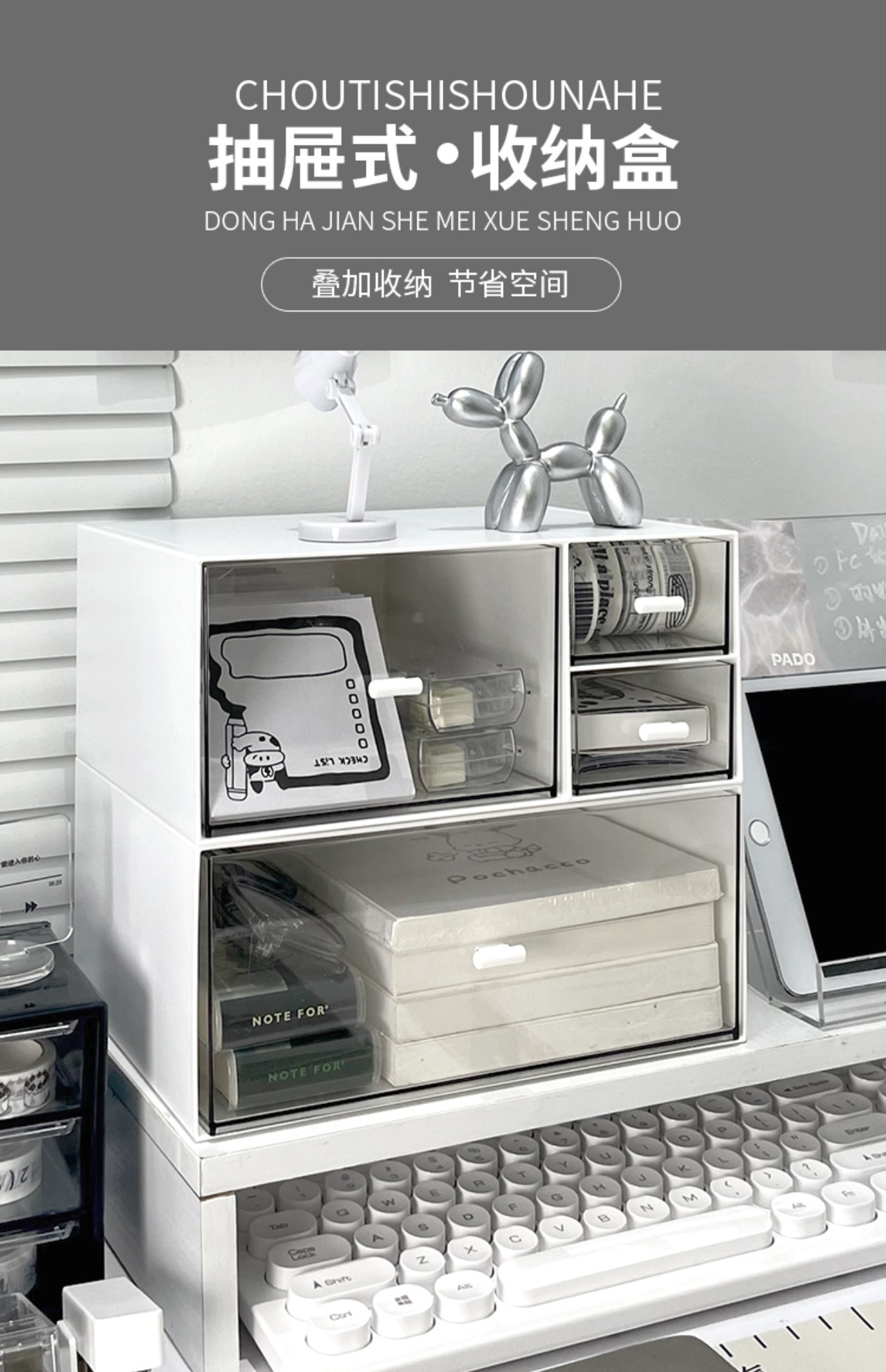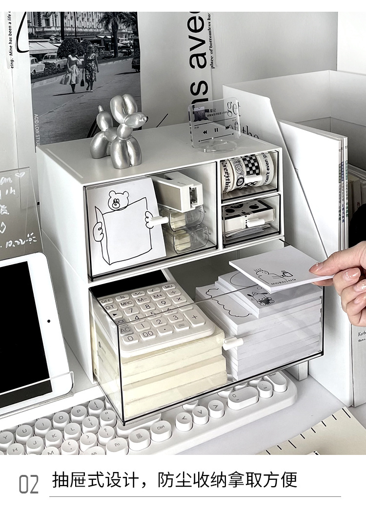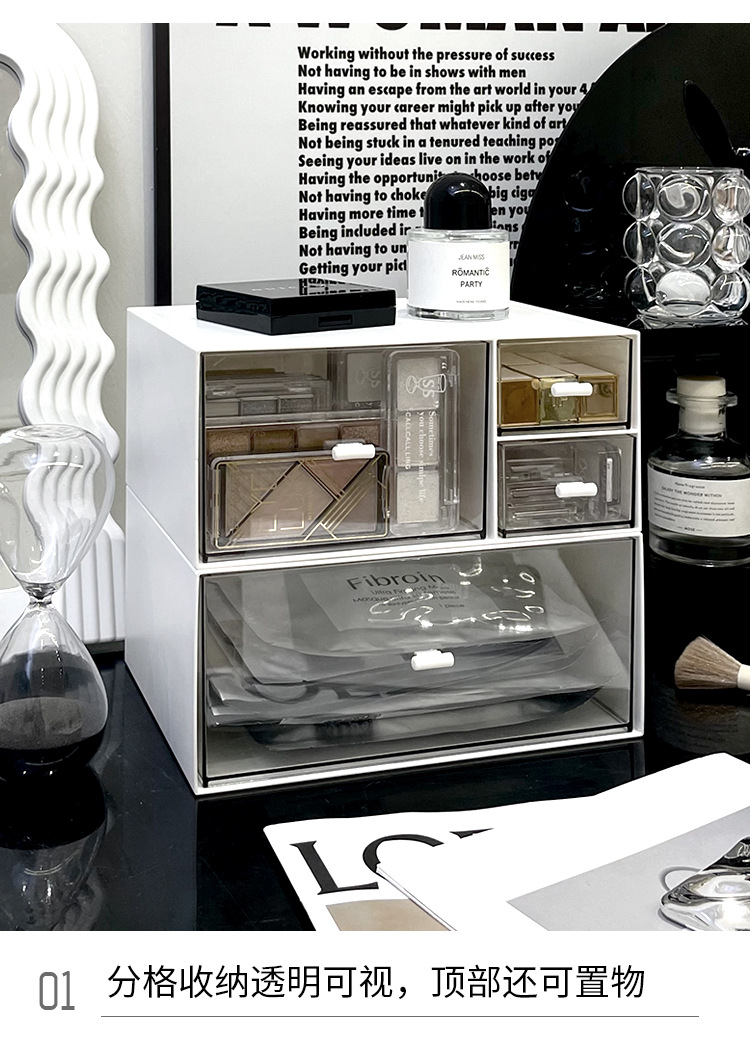 간단한 데스크톱 저장 상자 서랍 형 작은 투명 책상 문구 랙 사무실 워크 스테이션 주최자 상자
