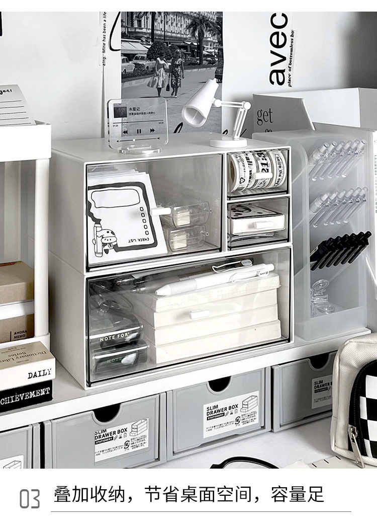 간단한 데스크톱 저장 상자 서랍 형 작은 투명 책상 문구 랙 사무실 워크 스테이션 주최자 상자스토어 가기