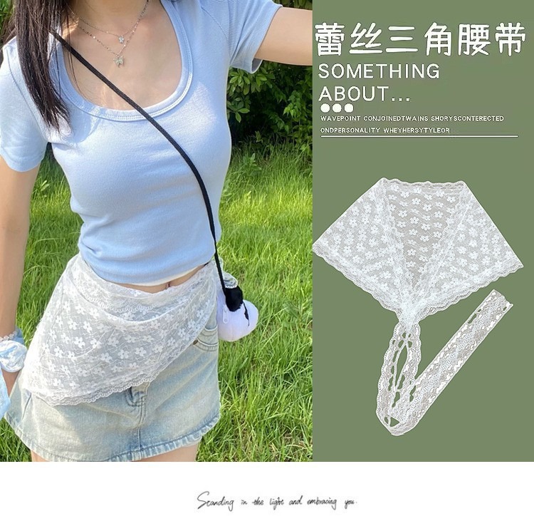 여름 레이스 삼각형 수건 한국 벨트 장식 소녀 목회 모리 스타일 문학 스타일 여행 사진 온라인 축하 액세서리스토어 가기