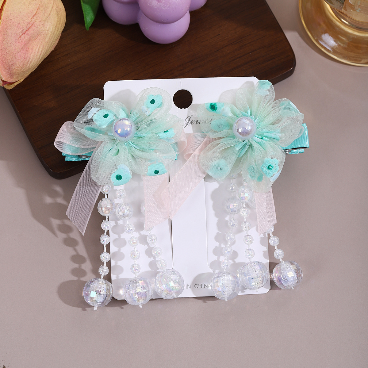 • 연한 녹색 꽃 덕빌 클립 한 쌍