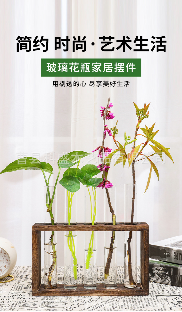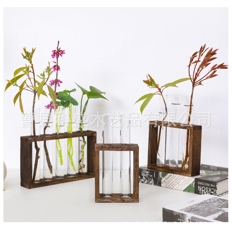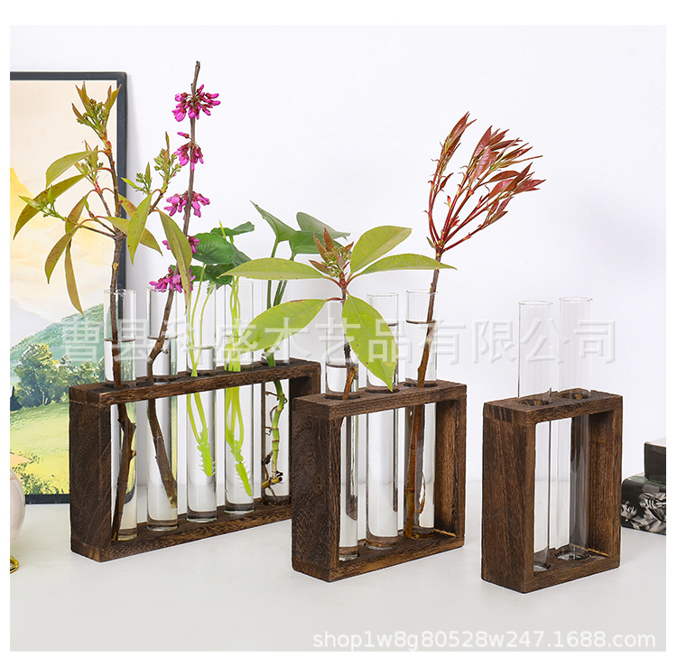 수경 녹색 식물 테스트 튜브 꽃병 물 꽃꽂이 식물 랙 나무 장식 크리 에이 티브 유리 꽃 랙 데스크탑