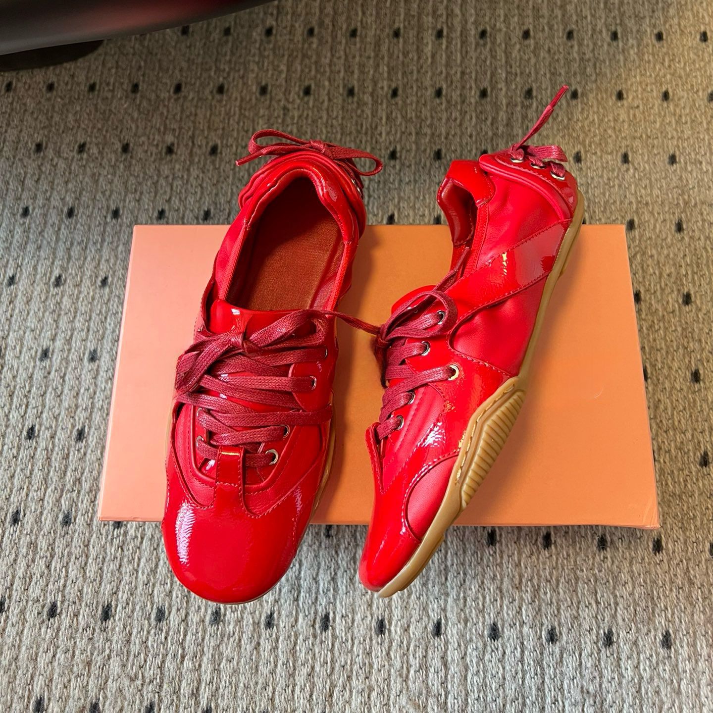 양가죽 버전 ~ 틈새 디자인 패션 올 매치 스포츠 발레 신발 여성 레이스 업 플랫 가죽 레트로 캐주얼 신발