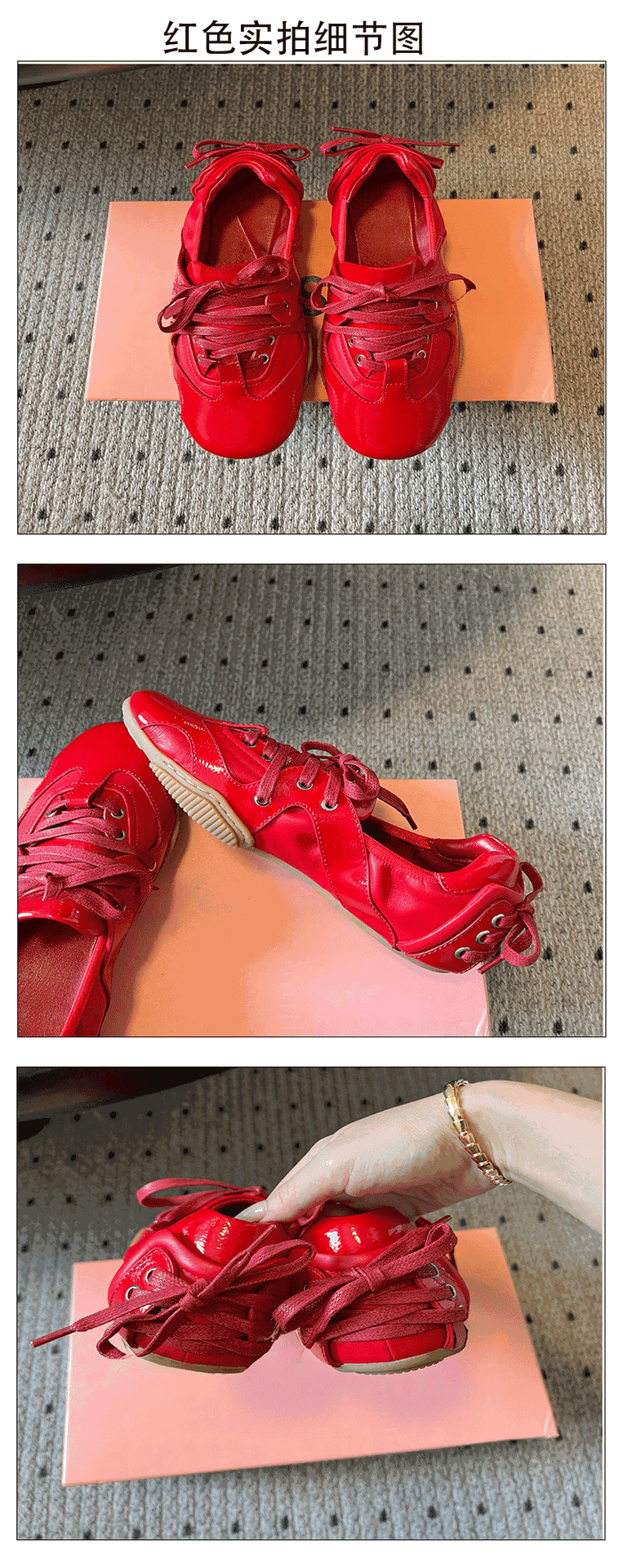 整双鞋也参考了芭蕾舞女演员真实穿的足尖鞋,打造前半段的绑带设计,脚后跟的地方也有交叉绑带,鞋后方还有精致的装饰性绑带,搭配无缝橡胶鞋底,是一双兼具浪漫与街头感的平底鞋。