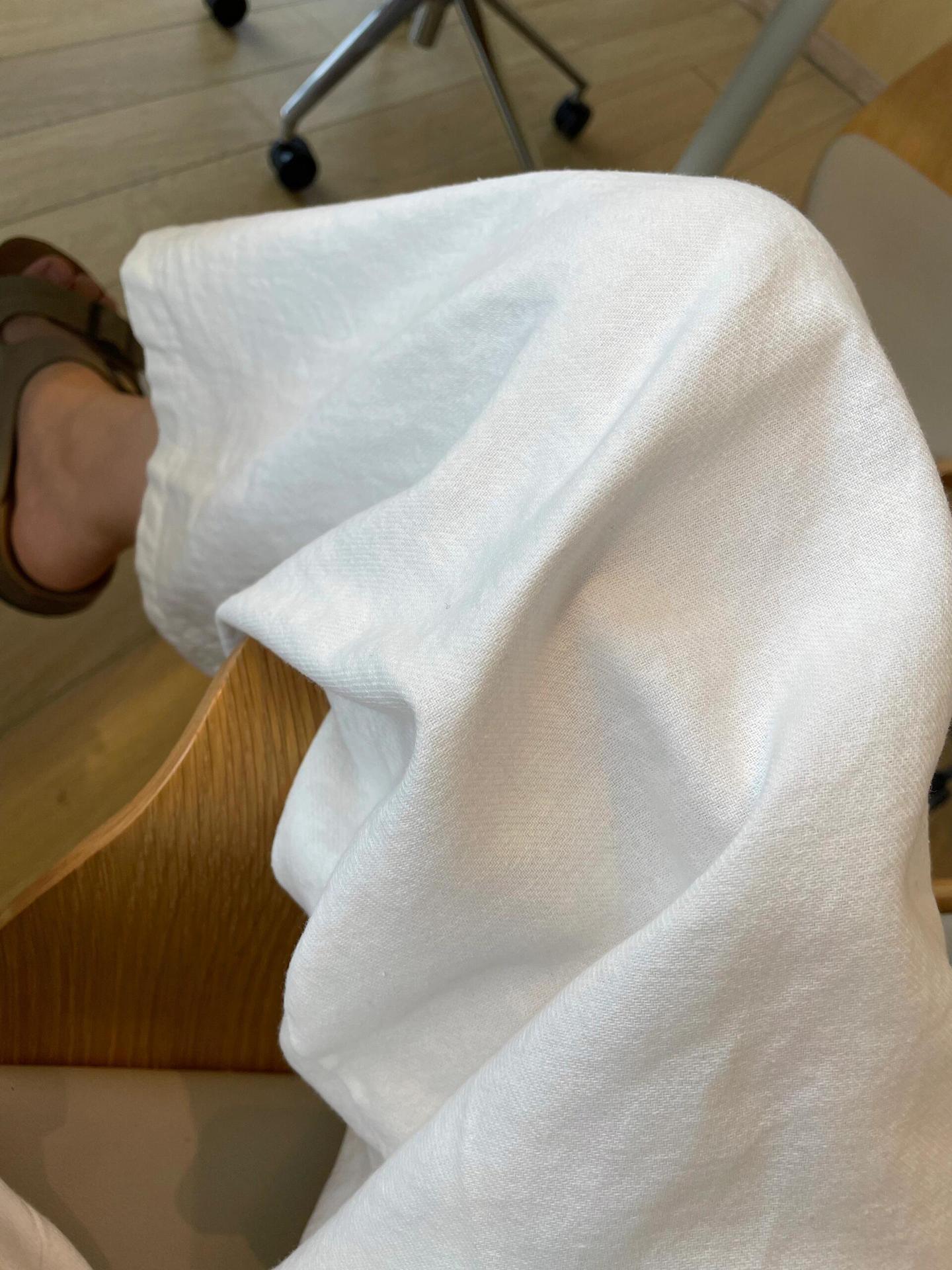봄과 여름 흰색면과 린넨 와이드 레그 바지 여성의 얇은 탄성 허리 소프트 왁스 다용도 캐주얼 느슨한 스트레이트 바지 여성스토어 가기