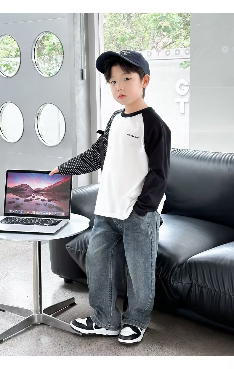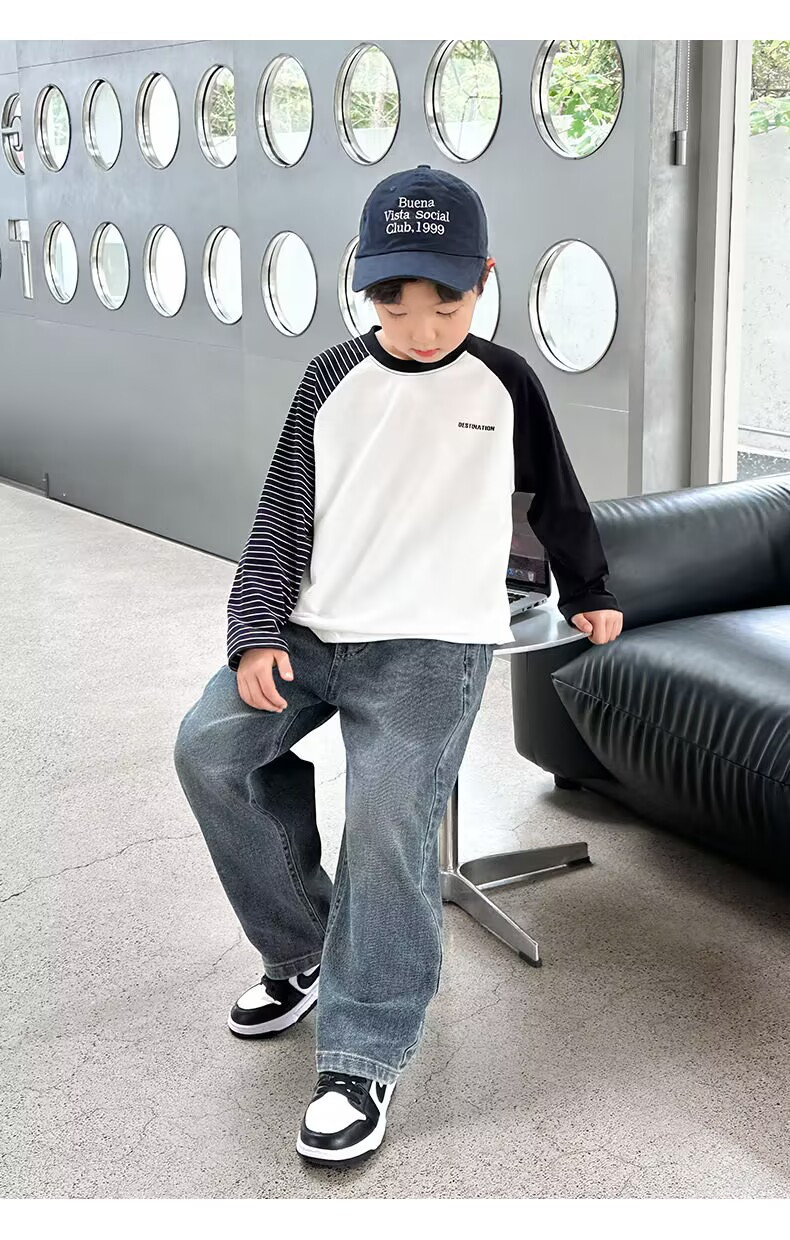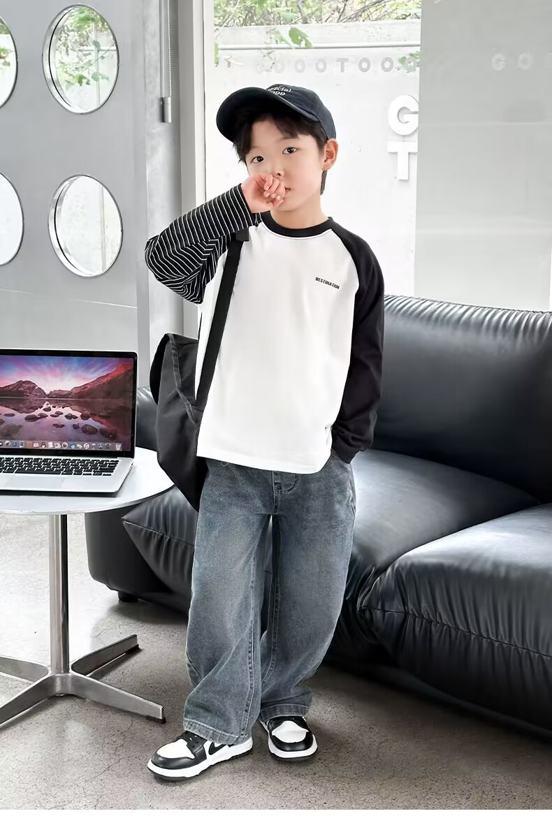 소년 청바지 봄과 가을 빈티지 올 매치 스트레이트 루즈 바지 소년 바지 잘 생긴 미들, 빅 보이의 넓은 다리 바지스토어 가기