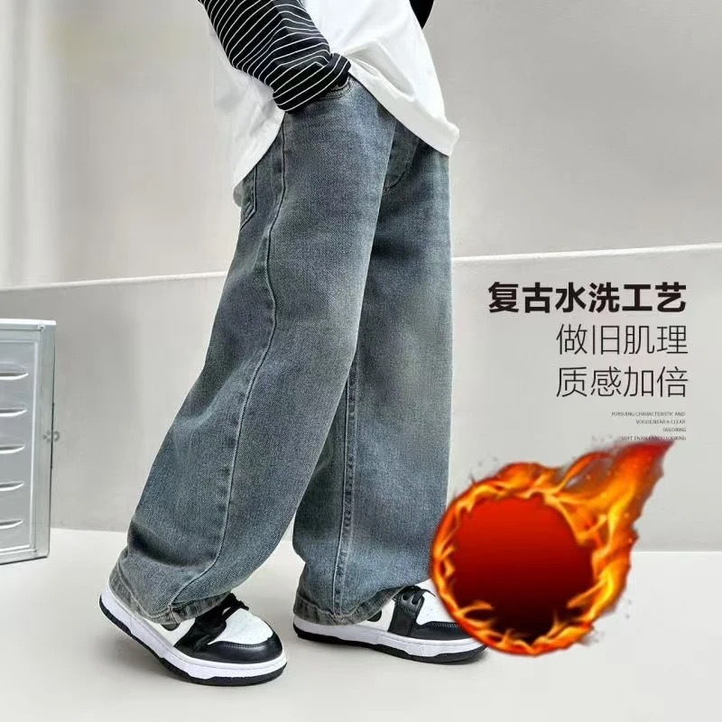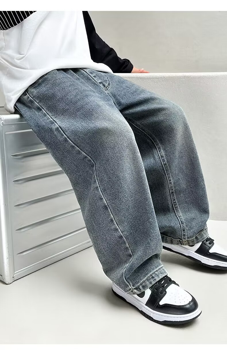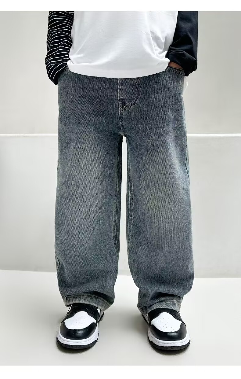 소년 청바지 봄과 가을 빈티지 올 매치 스트레이트 루즈 바지 소년 바지 잘 생긴 미들, 빅 보이의 넓은 다리 바지