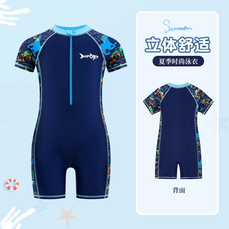 男孩泳衣小恐龙印花2025新款男宝小中大童游泳衣连体款学生泳装