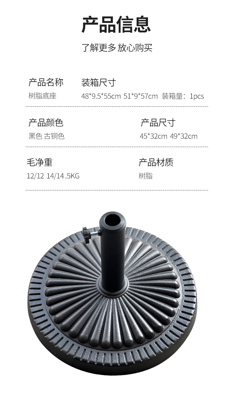 공장 직접 판매 태양 우산 홀더 라운드 수지 우산 홀더 중간 기둥 우산 홀더 야외 우산 홀더 시멘트 우산 홀더스토어 가기