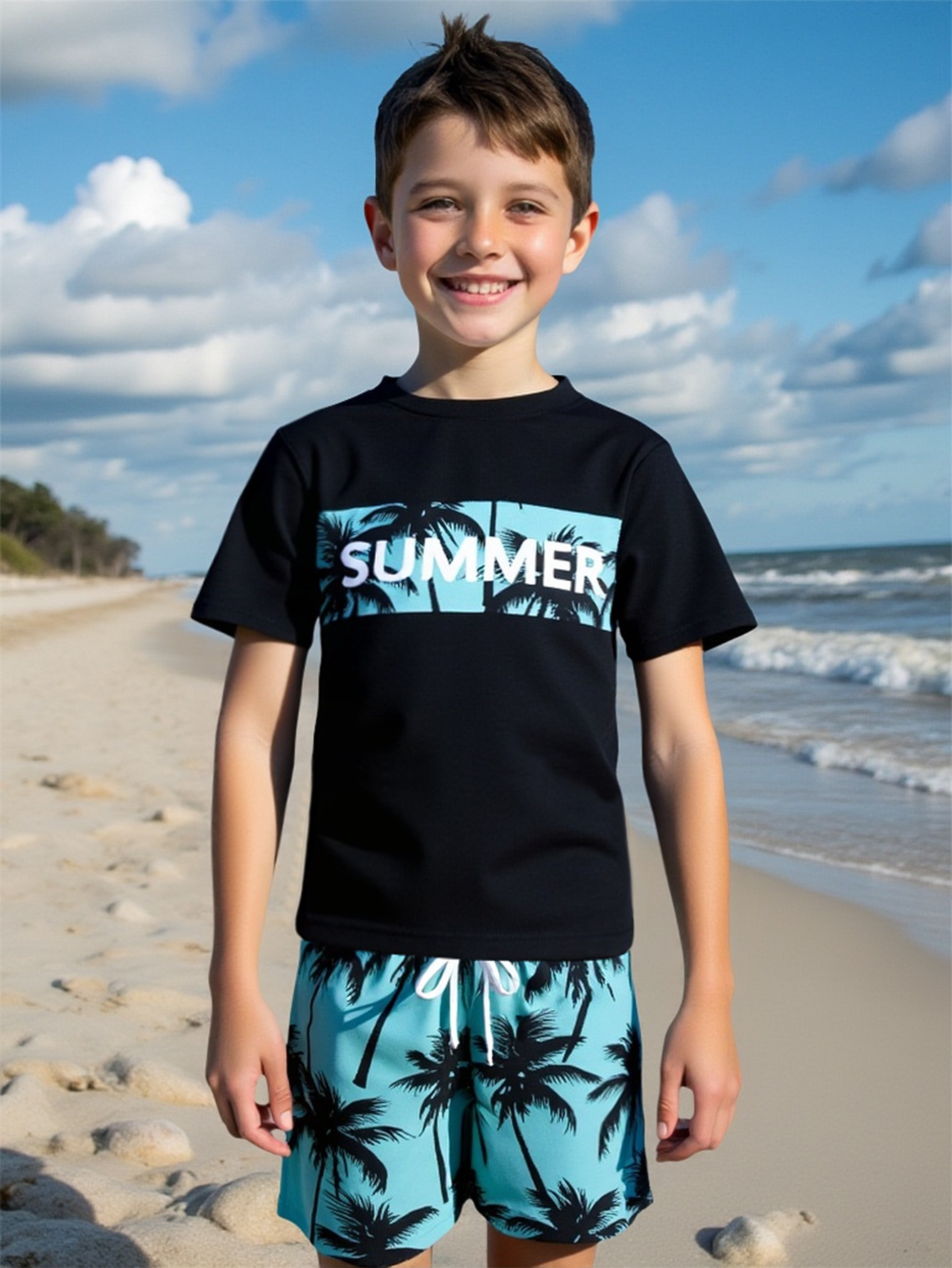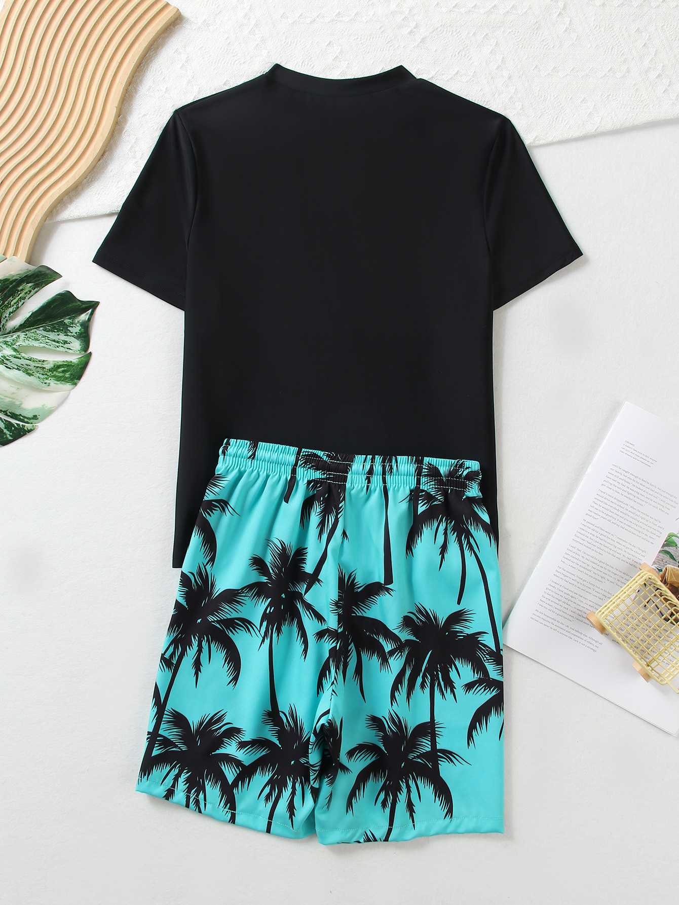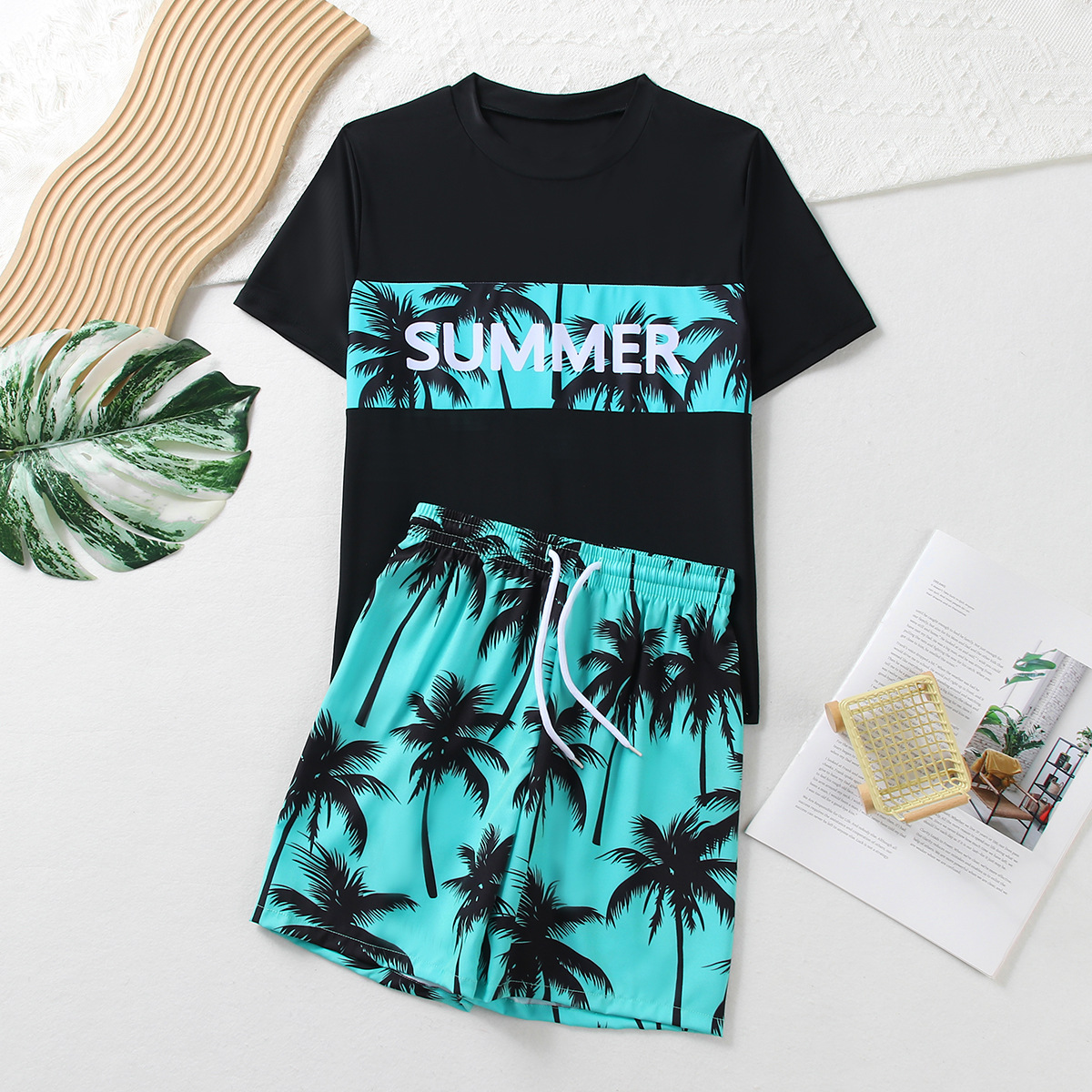 어린이 수영복 소년 스플릿 수영복 2025 새로운 반팔 프린트 비치 반바지 속건성 소년 수영복