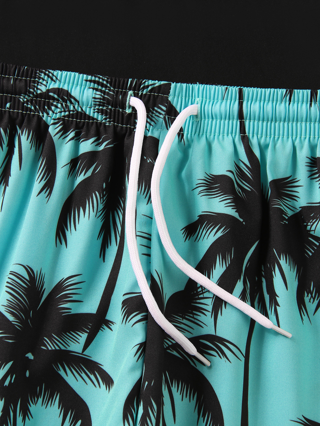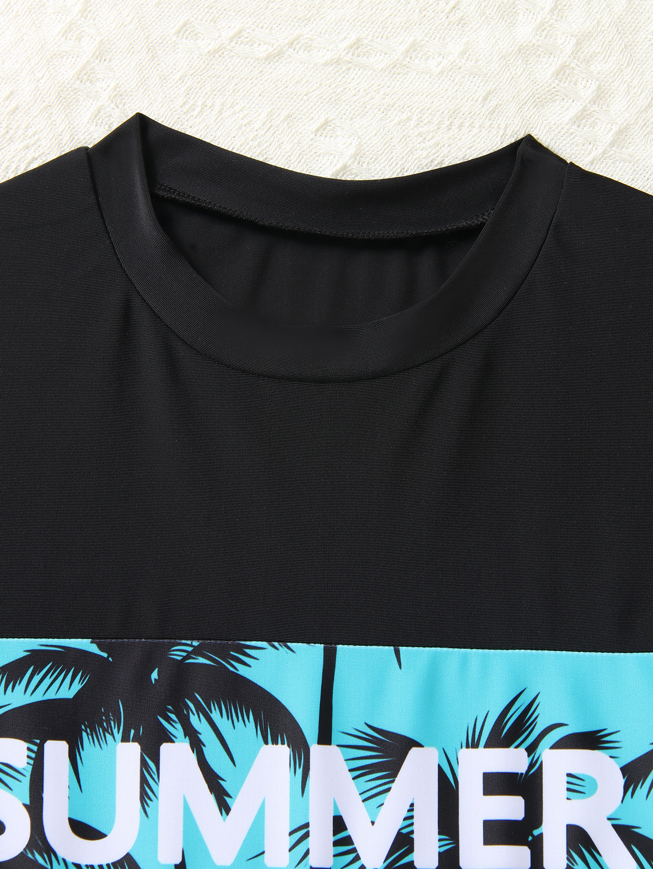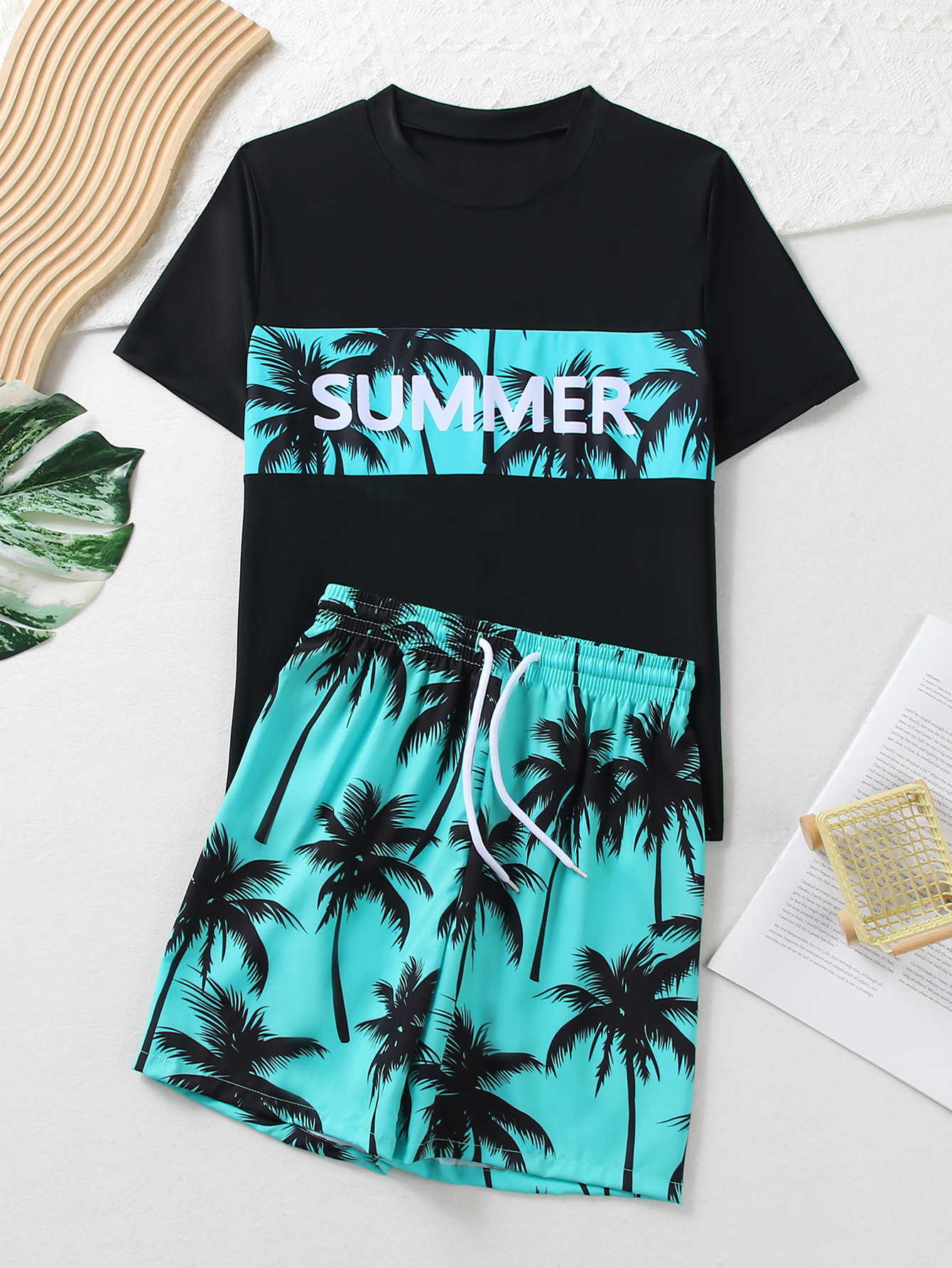 어린이 수영복 소년 스플릿 수영복 2025 새로운 반팔 프린트 비치 반바지 속건성 소년 수영복