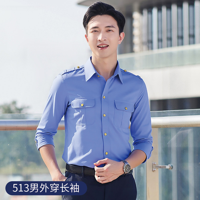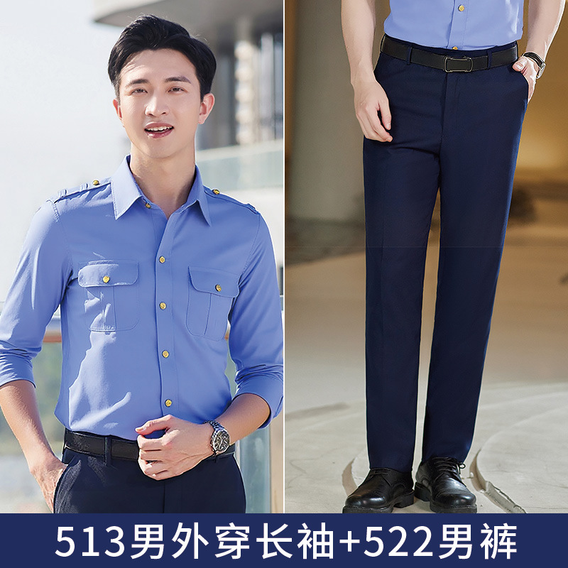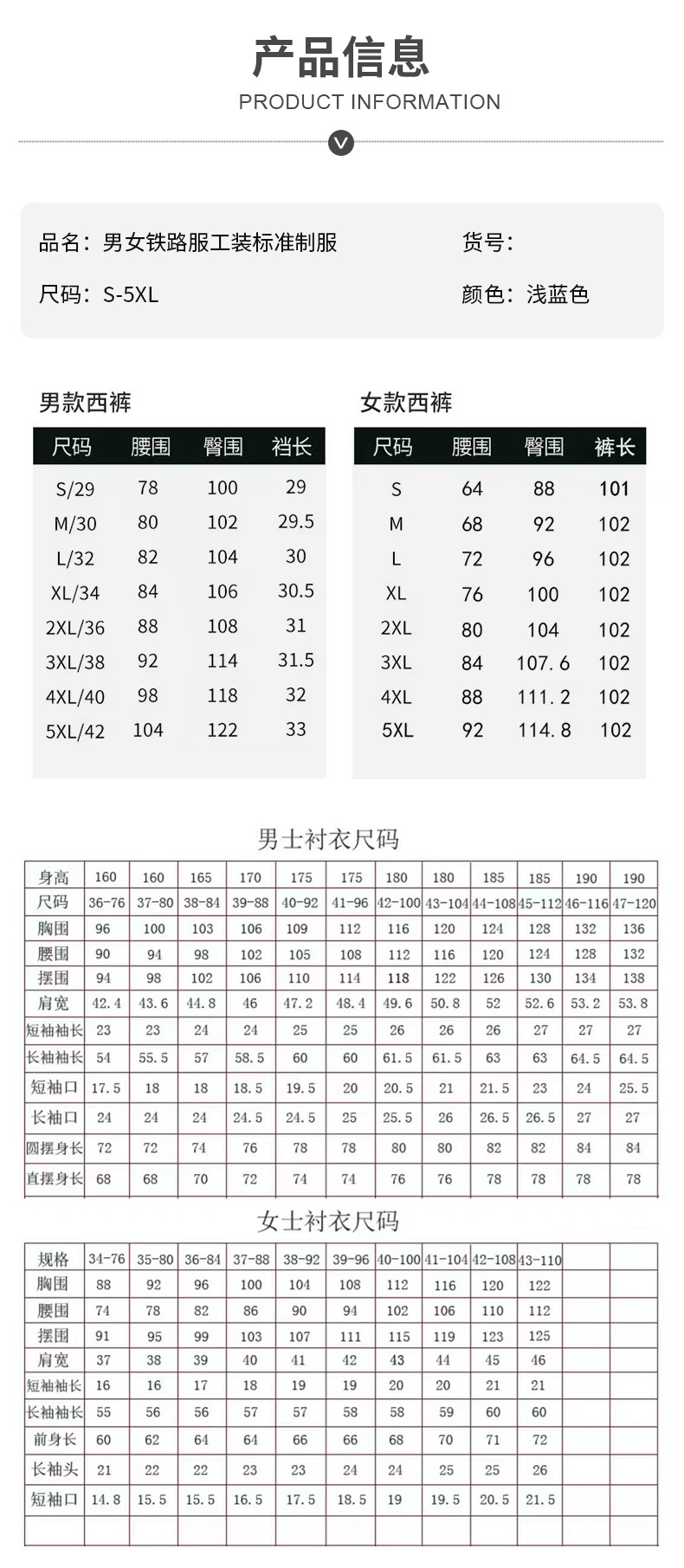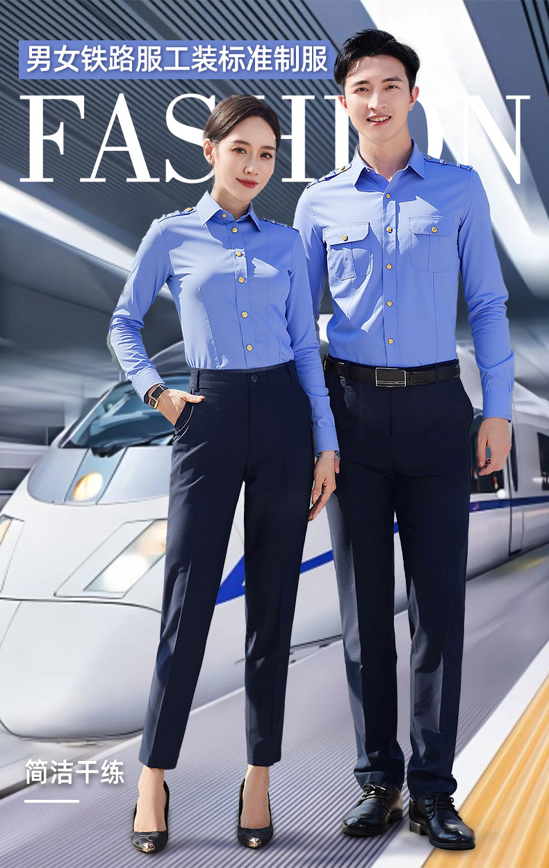 새로운 철도 셔츠 남자와 여자 같은 스타일 길고 짧은 소매 셔츠 창 유니폼 작업복 세트 승무원 작업복 블루