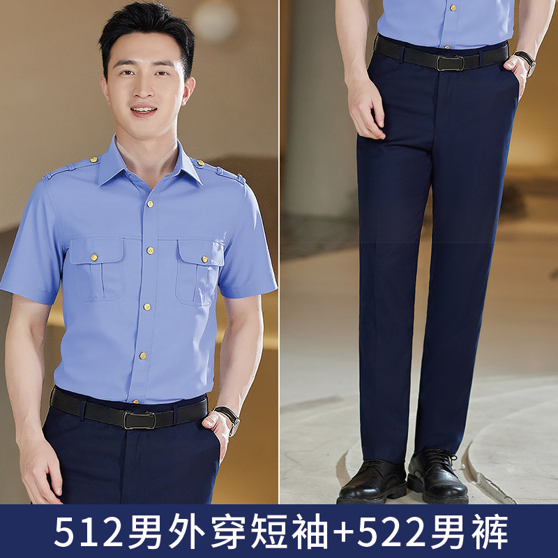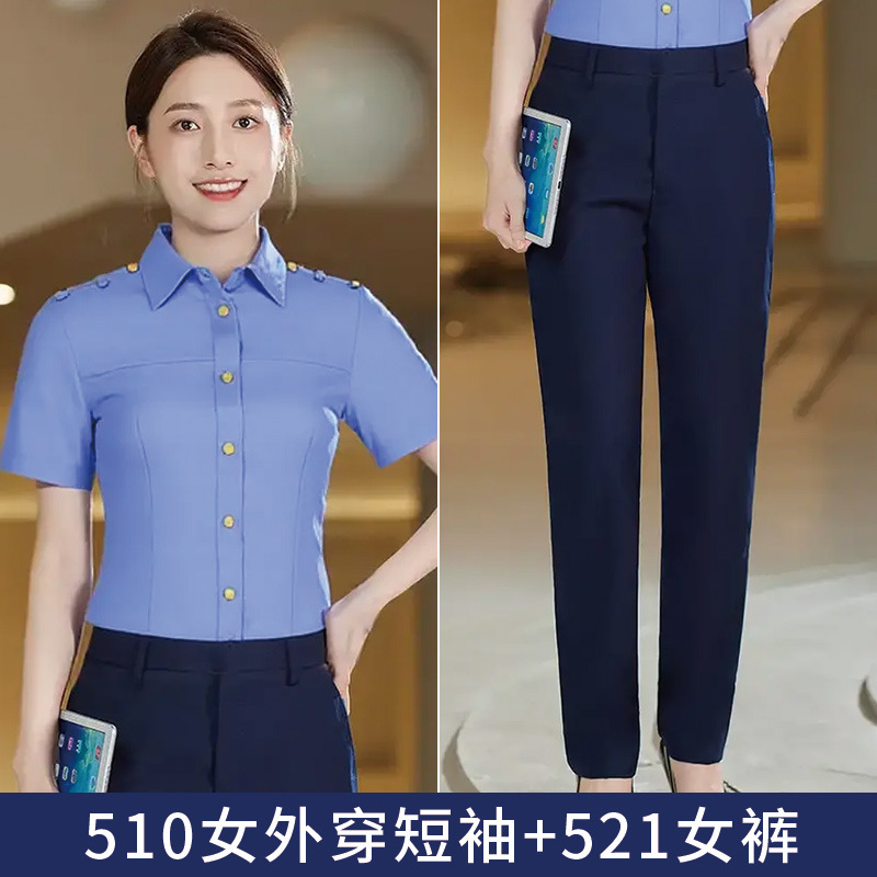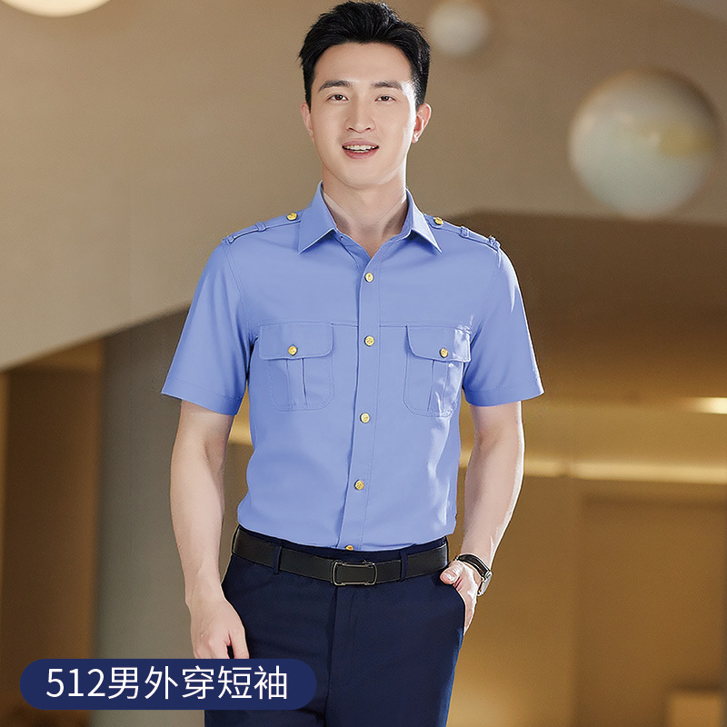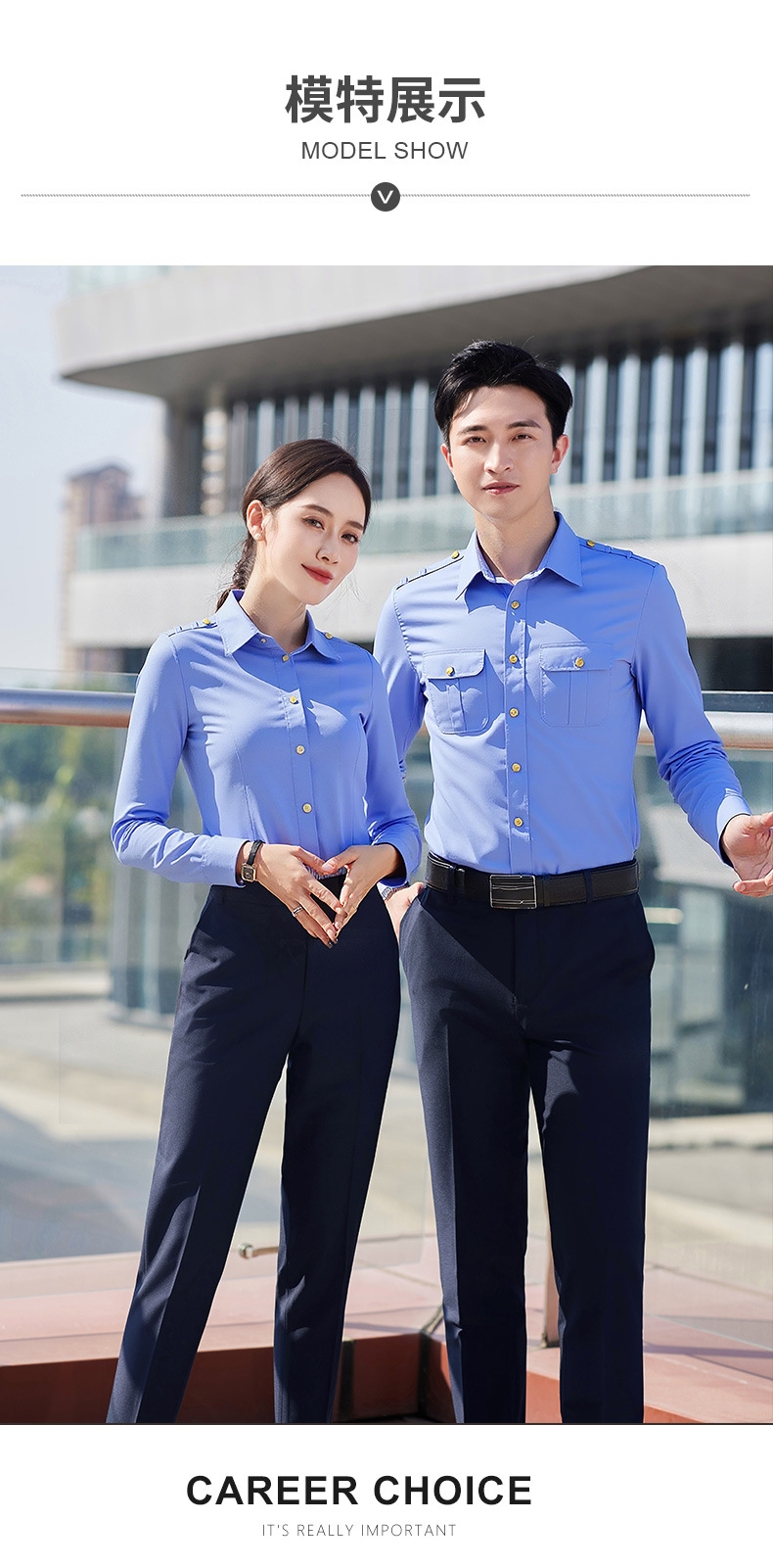 새로운 철도 셔츠 남자와 여자 같은 스타일 길고 짧은 소매 셔츠 창 유니폼 작업복 세트 승무원 작업복 블루