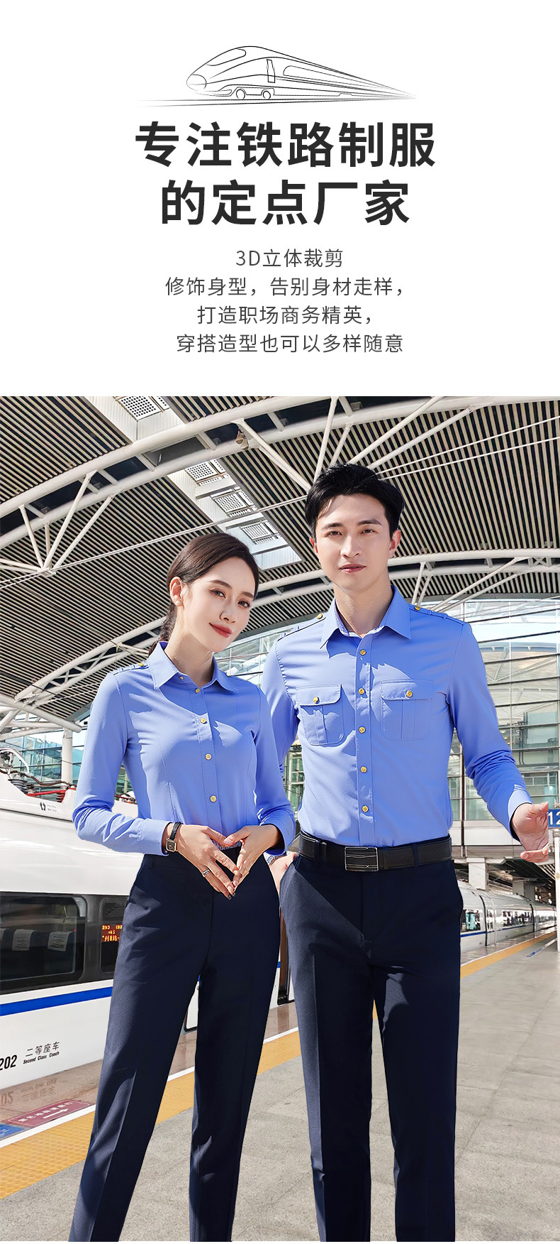 새로운 철도 셔츠 남자와 여자 같은 스타일 길고 짧은 소매 셔츠 창 유니폼 작업복 세트 승무원 작업복 블루스토어 가기
