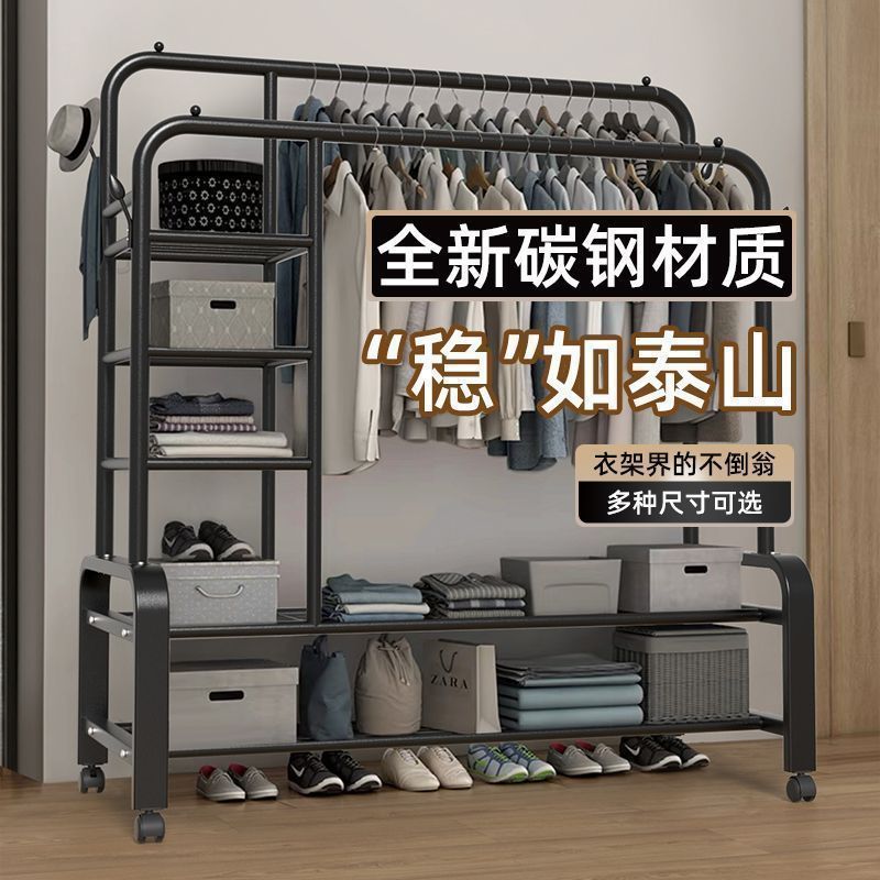 바닥 건조 랙 실내 수직 코트 랙 룸 침실 교수형 옷 기숙사 임대 하우스 간단한 더블 폴스토어 가기