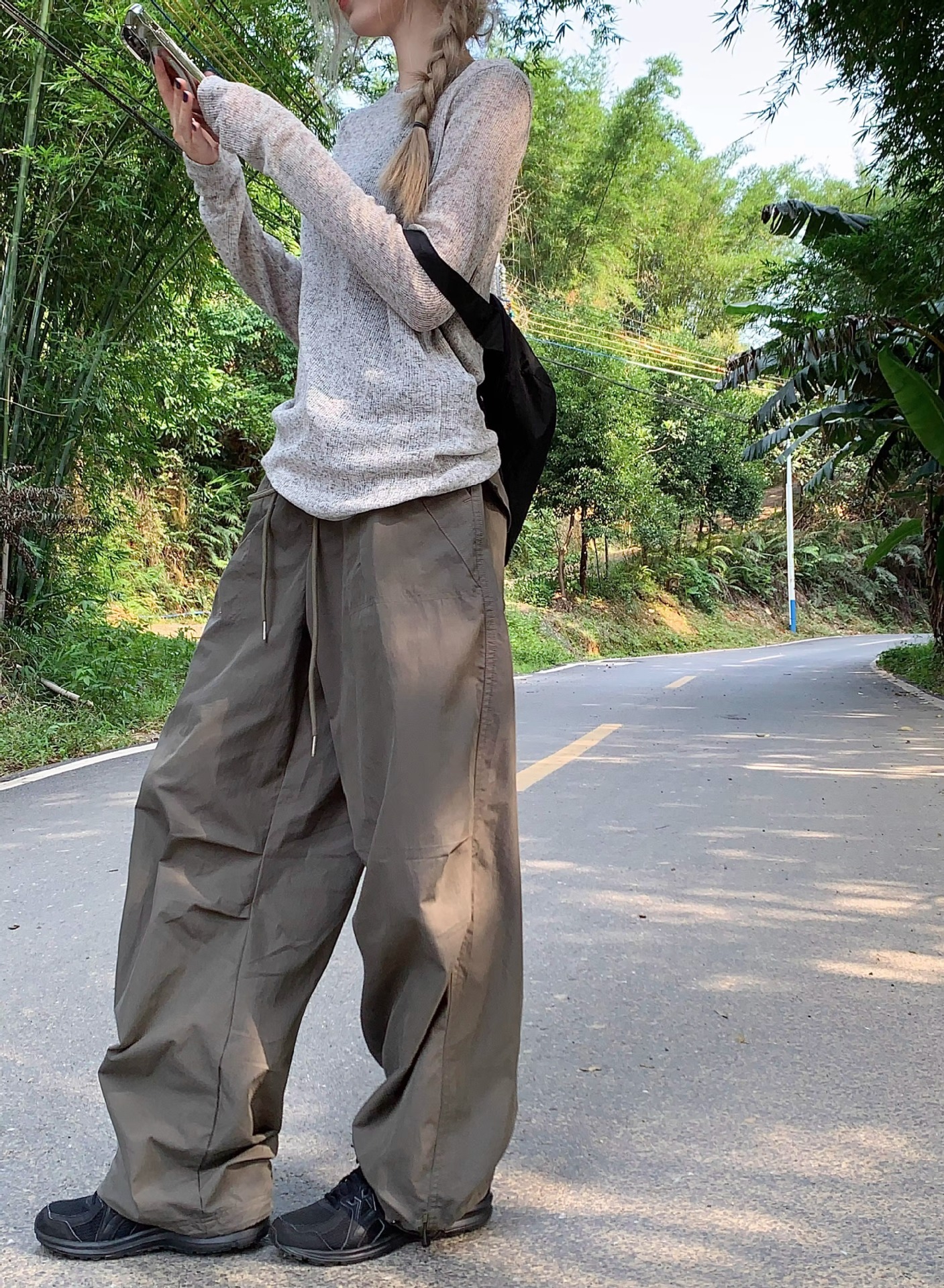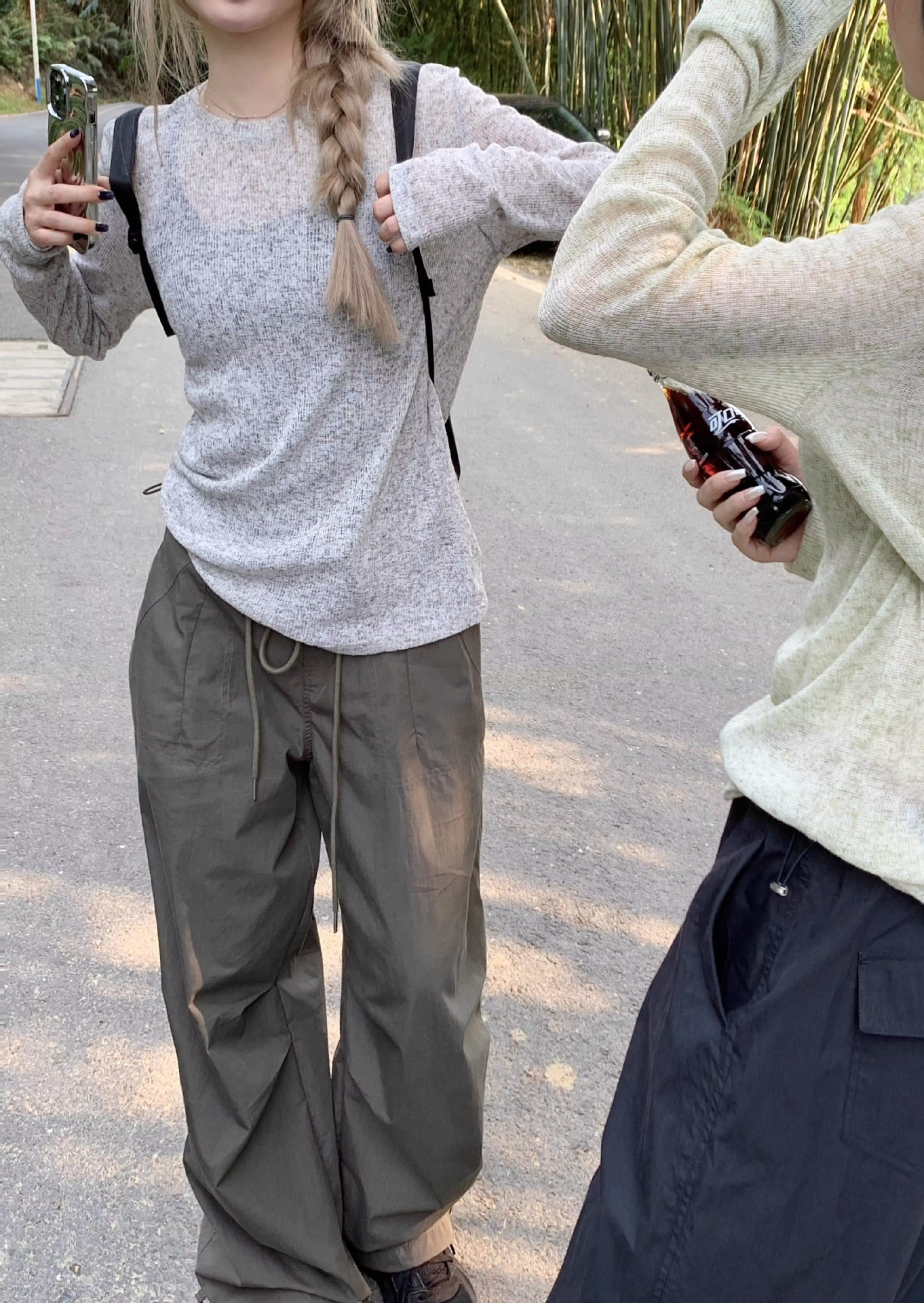 가을과 여름을위한 회색 긴팔 니트 선스크린 셔츠 여성용 블라우스 티셔츠 얇은 에어컨 셔츠 캐주얼 탑스토어 가기