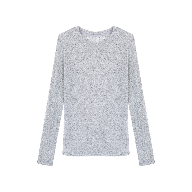 가을과 여름을위한 회색 긴팔 니트 선스크린 셔츠 여성용 블라우스 티셔츠 얇은 에어컨 셔츠 캐주얼 탑