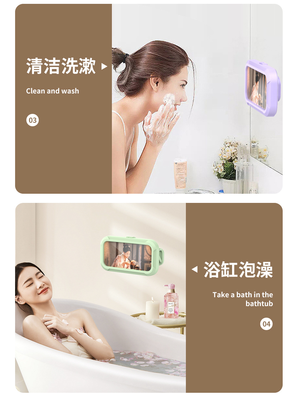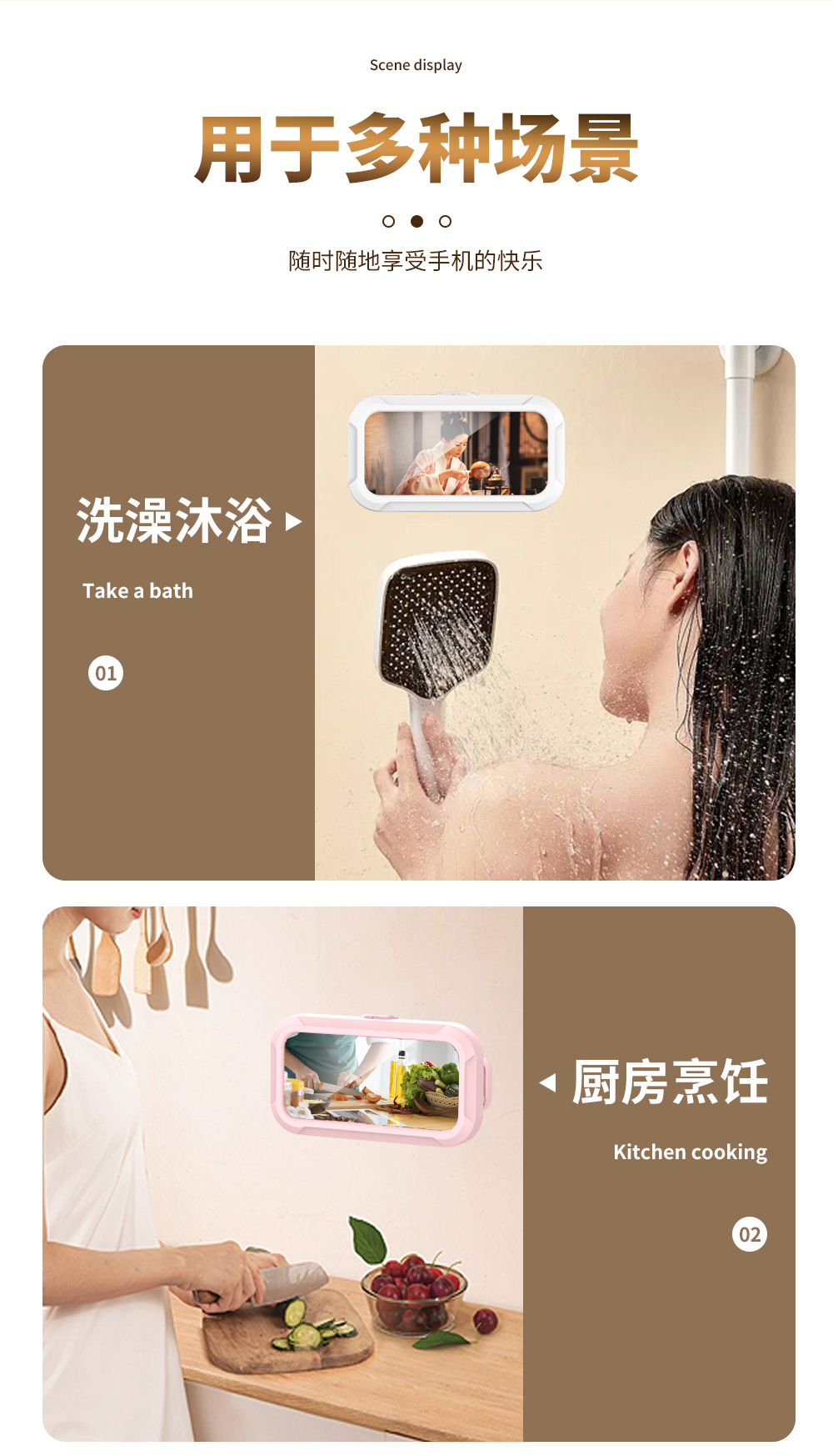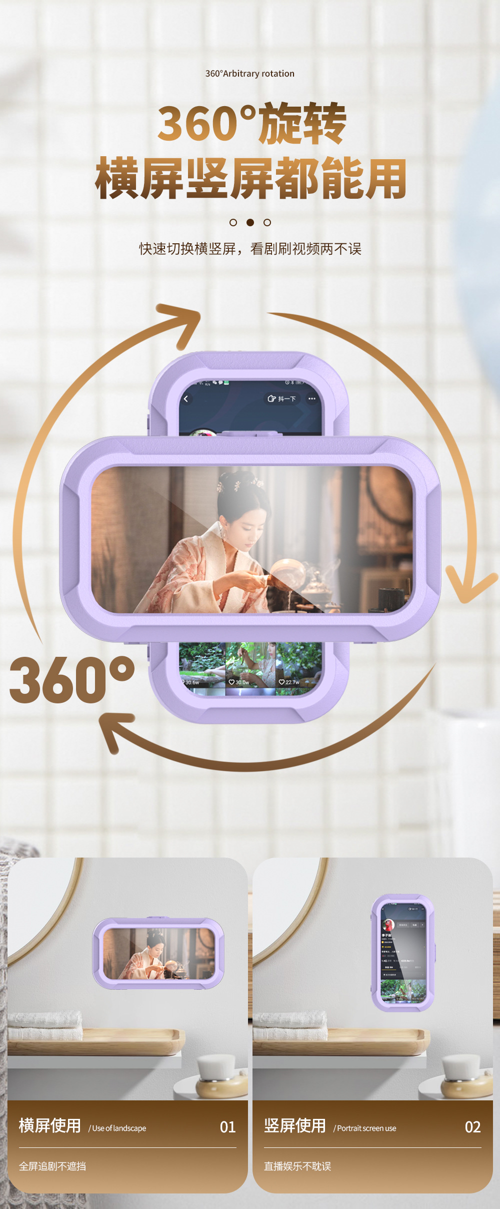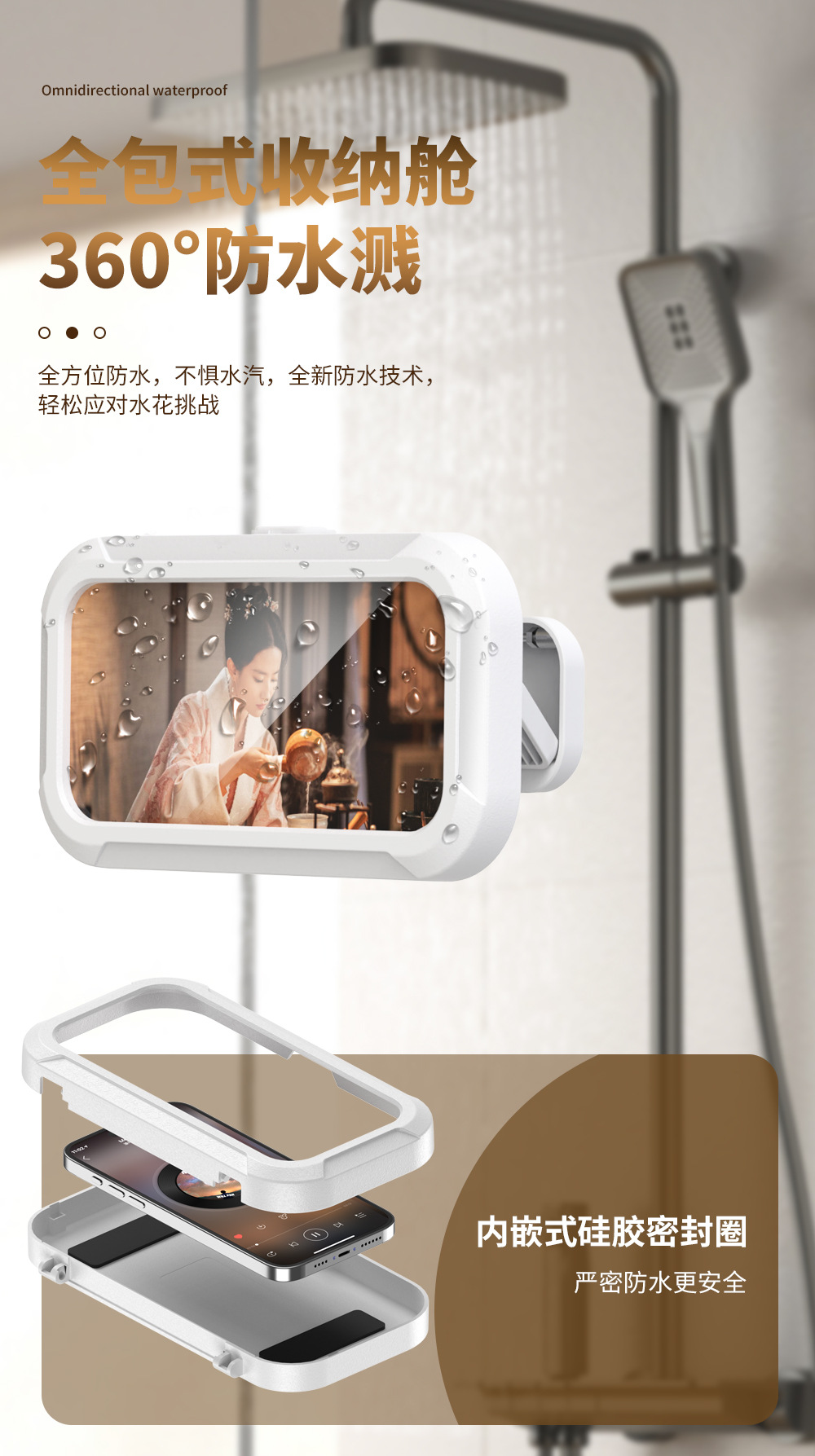4 세대 욕실 방수 휴대 전화 상자 360 도 회전 비 천공 목욕 드라마 유물 주방 벽 안개 방지 상자