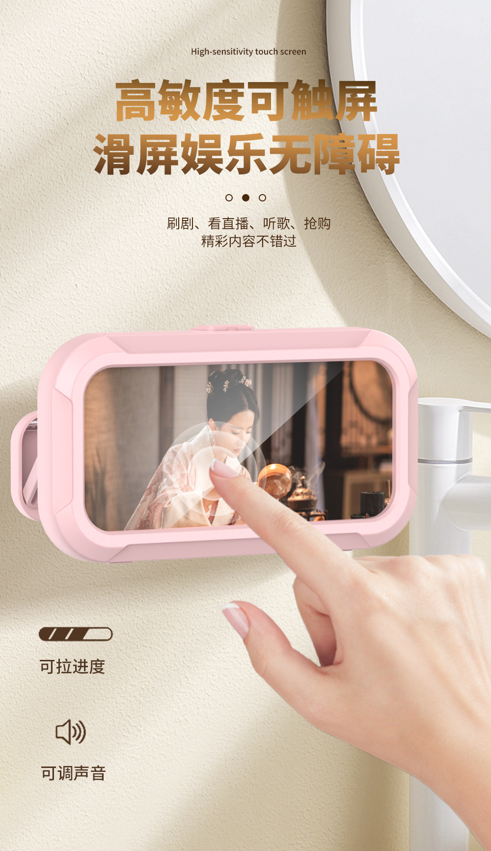 4 세대 욕실 방수 휴대 전화 상자 360 도 회전 비 천공 목욕 드라마 유물 주방 벽 안개 방지 상자스토어 가기