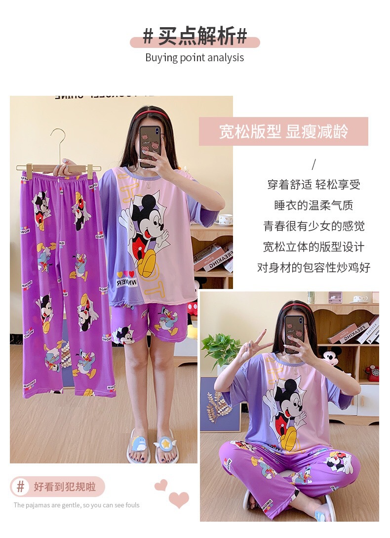파자마 여성 여름 3 종 세트 반팔 바지 한국식 핫 셀러 만화 패턴 느슨한 잠옷 홈 옷