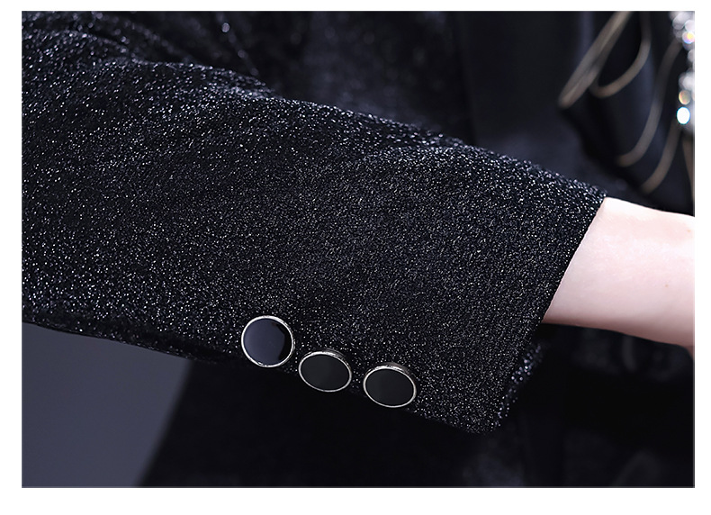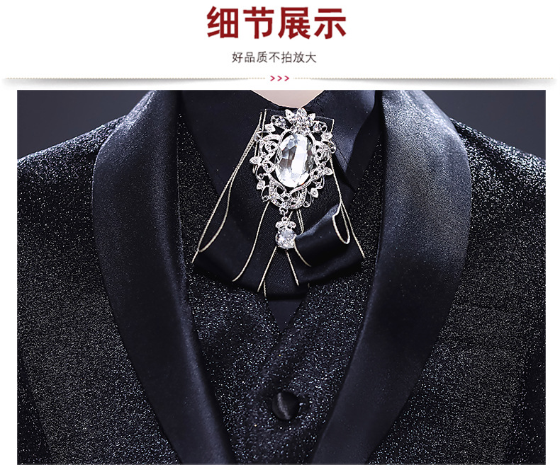 • 블랙 샤이니 실크 슈트 + 조끼 + 바지 + 나비 넥타이