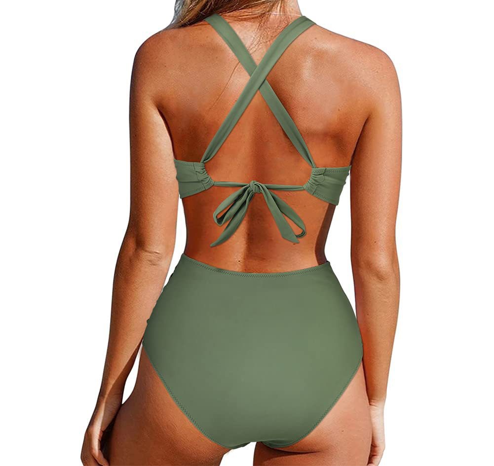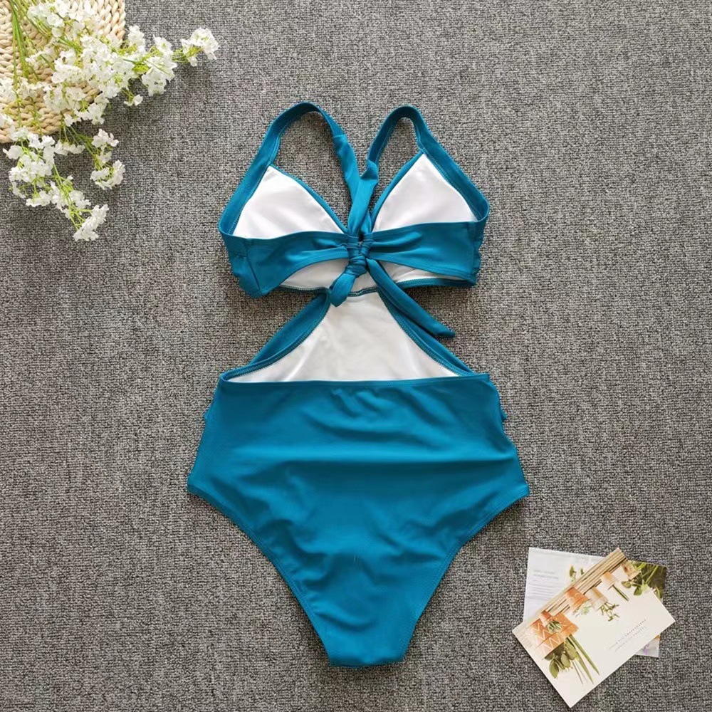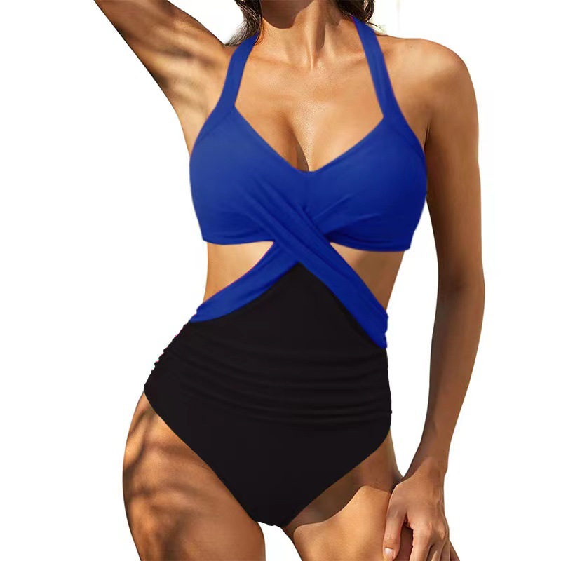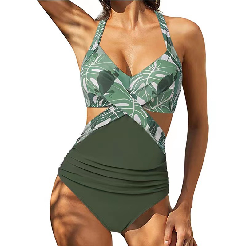 새로운 원피스 수영복 유럽과 미국의 대외 무역 멀티 컬러 인쇄 스티칭 원피스 크로스 수영복 속이 빈 섹시 리크 백 수영복