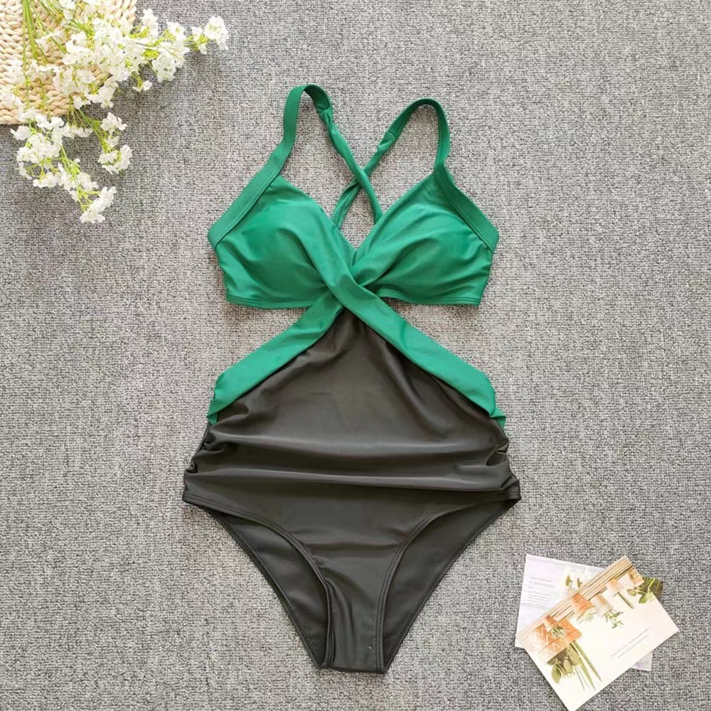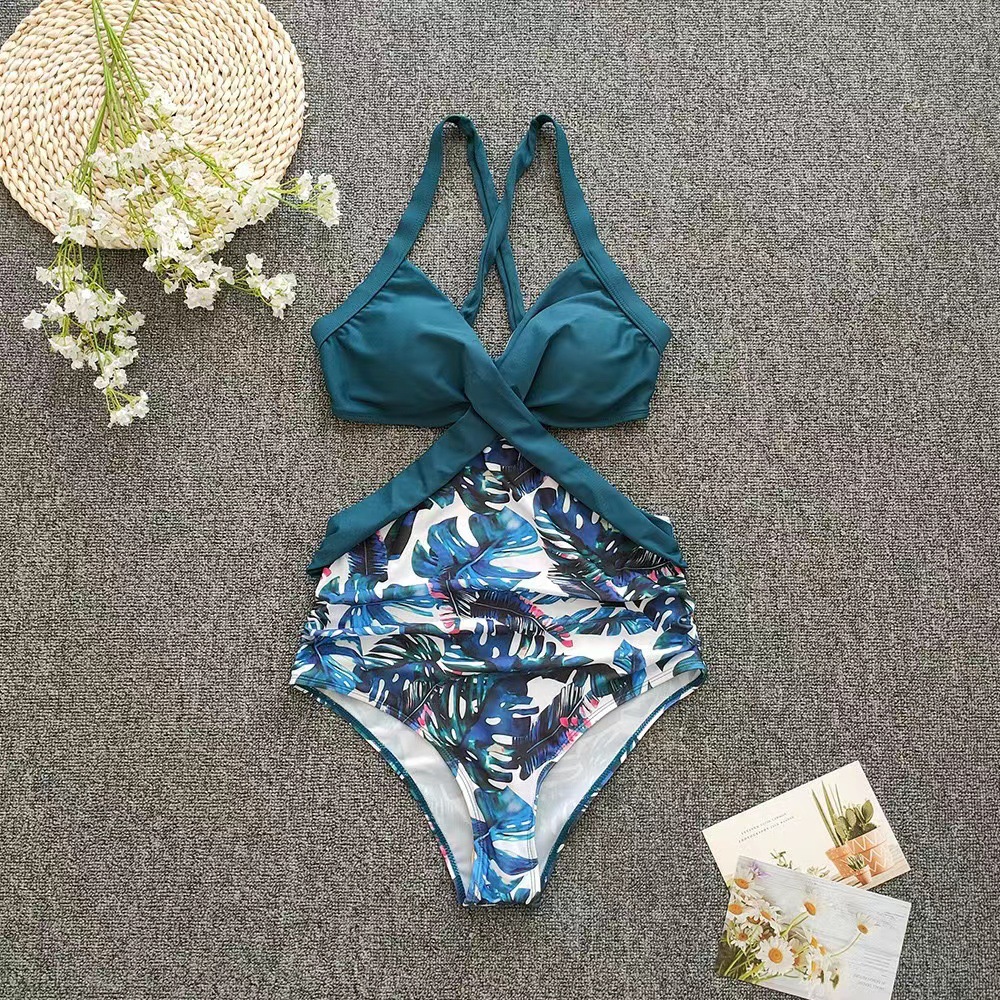 새로운 원피스 수영복 유럽과 미국의 대외 무역 멀티 컬러 인쇄 스티칭 원피스 크로스 수영복 속이 빈 섹시 리크 백 수영복스토어 가기