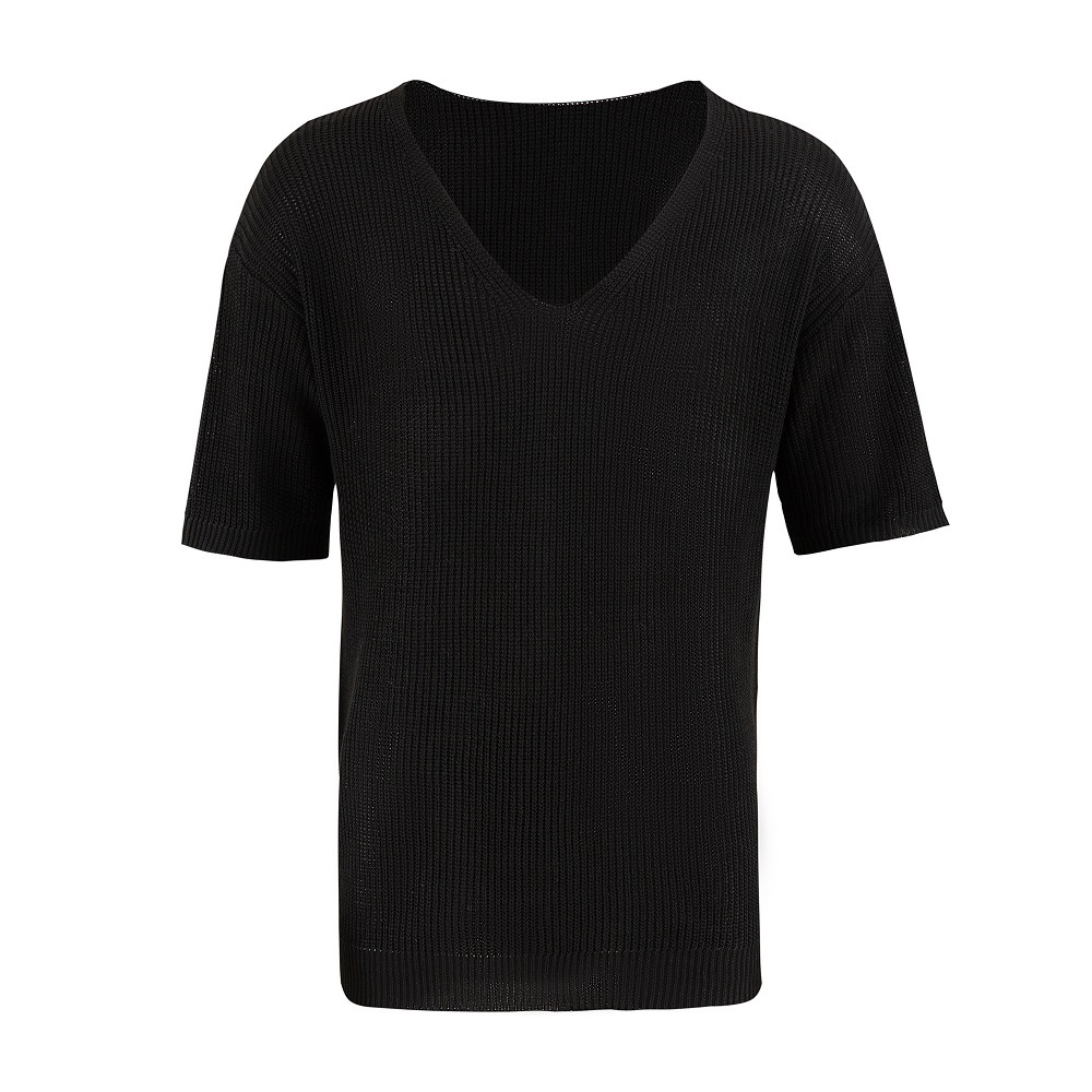 새로운 유럽과 미국 남성 여름과 가을 반팔 탑 크로스 보더 패션 캐주얼 v 넥 스웨터 남성 티셔츠스토어 가기